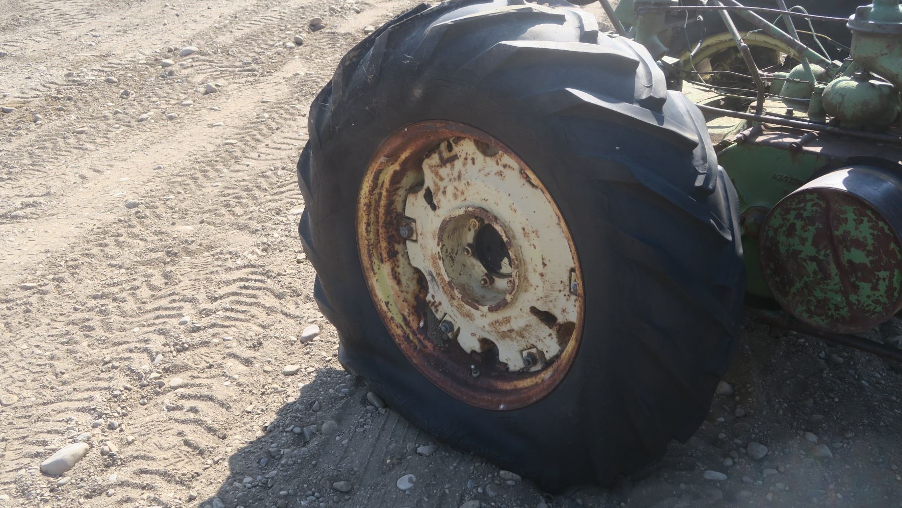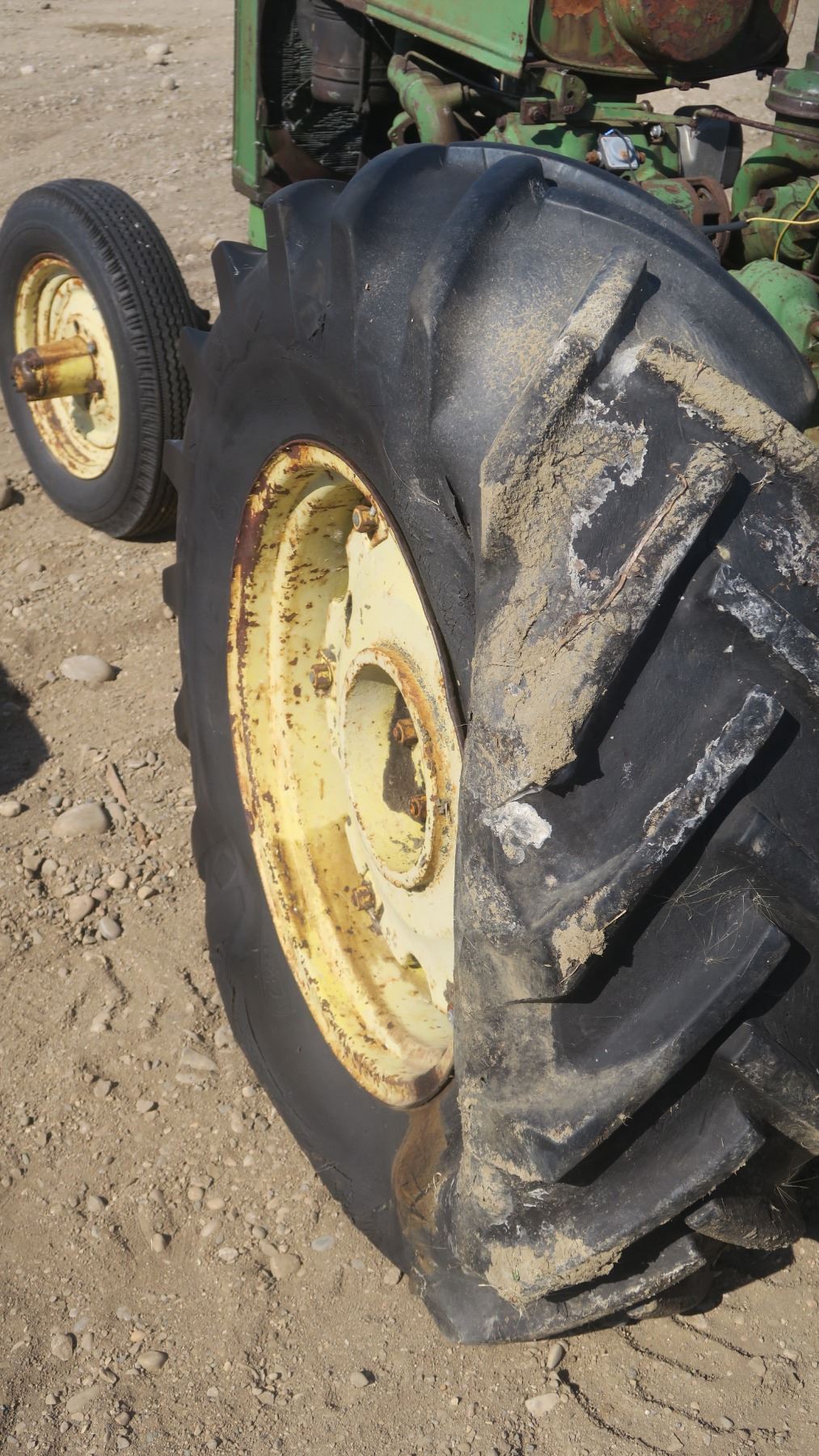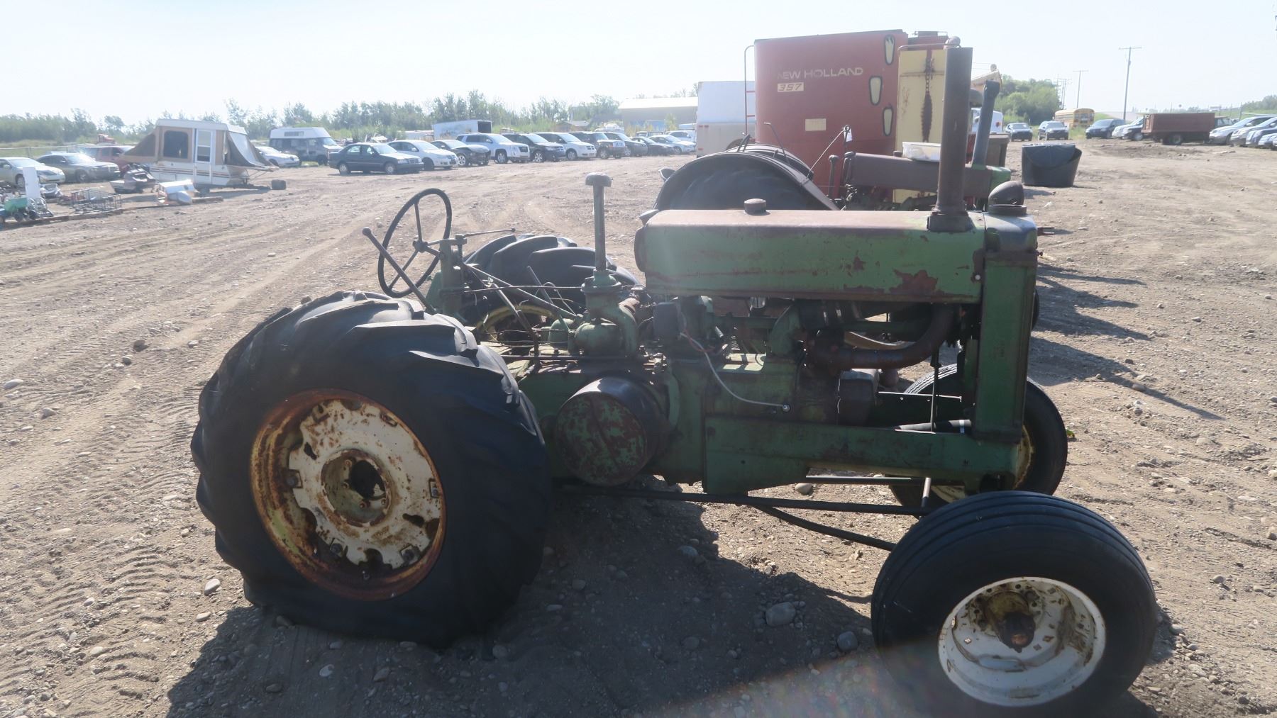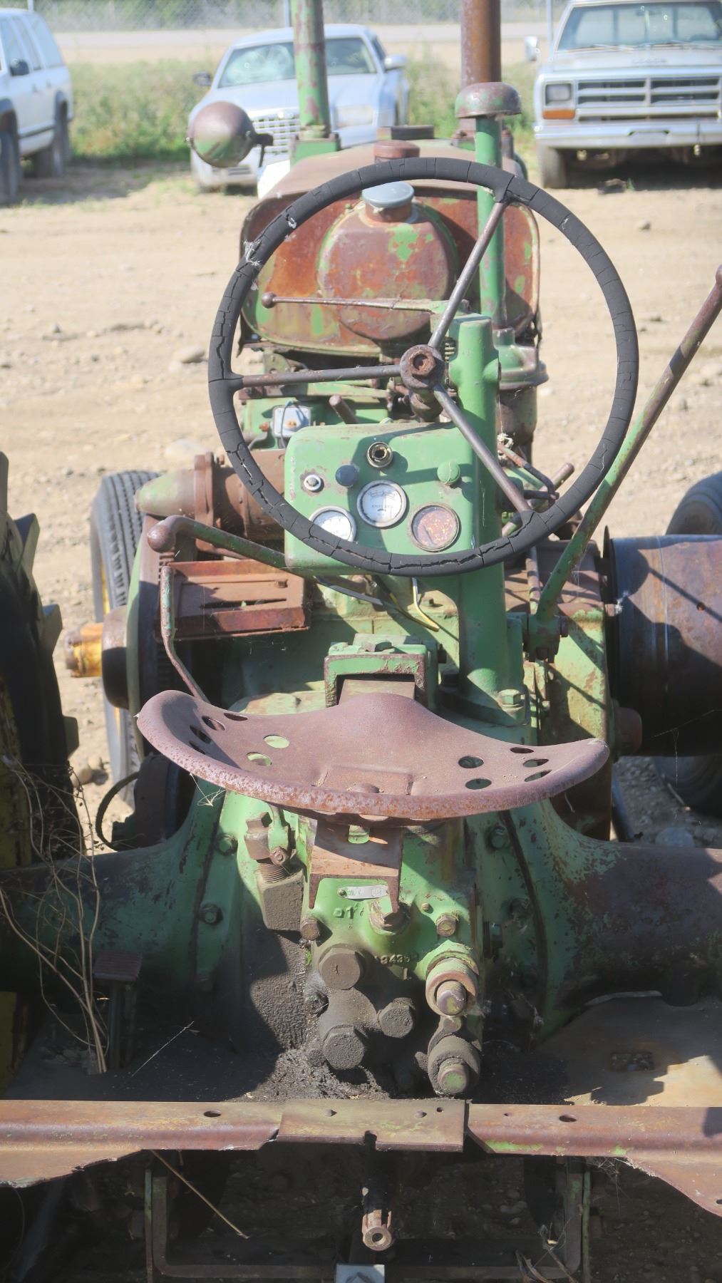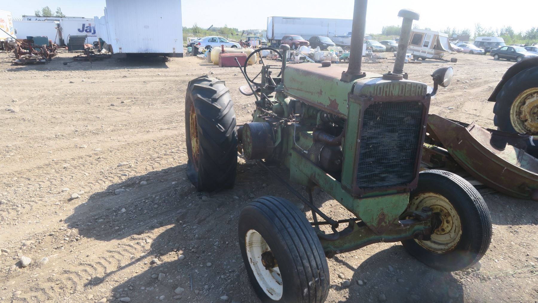 Model A John deer tractor #269444 with pallet of fenders and items for tractor.