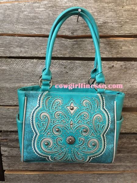 Montana West TURQUOISE AND SILVER GREY TOOLEDhandbag. Double shoulder straps. Inner and outer