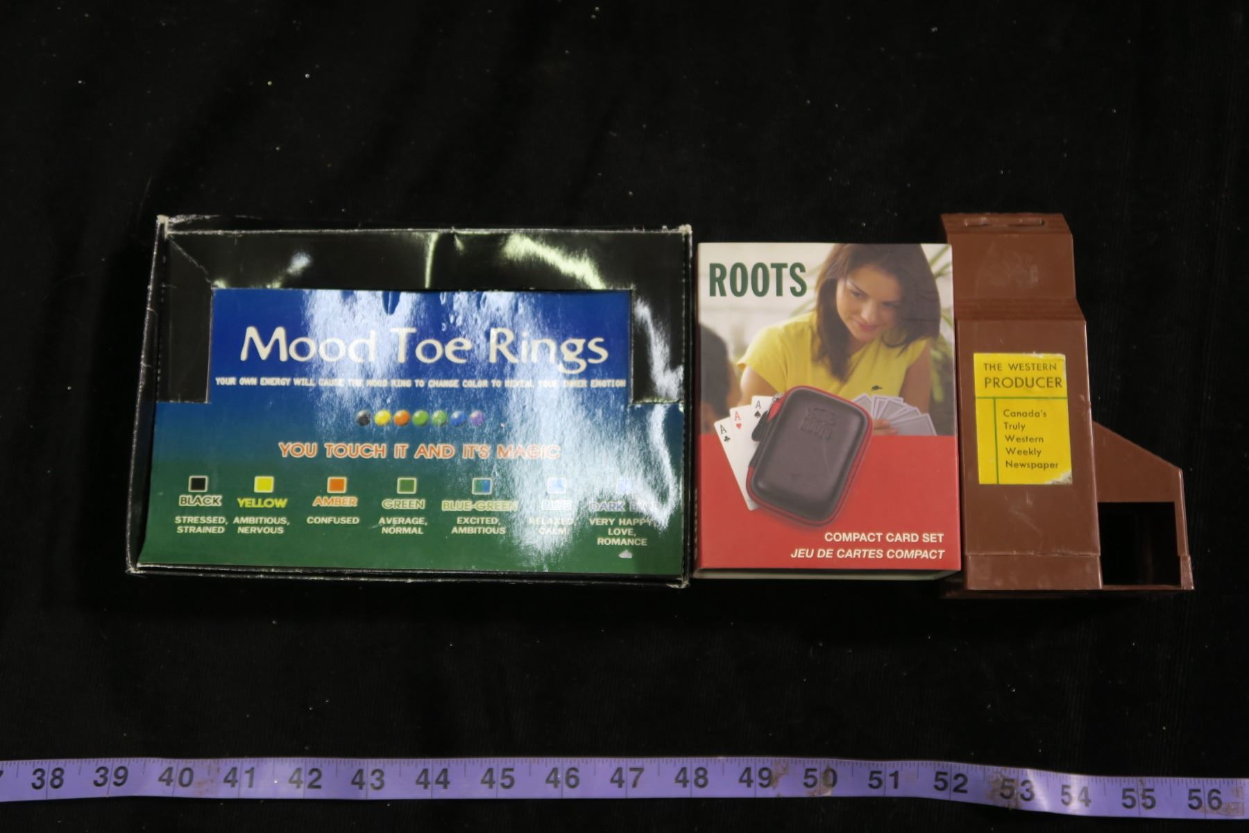 Mood Toe Rings, Roots Cards, Grain Elevator Coin Bank