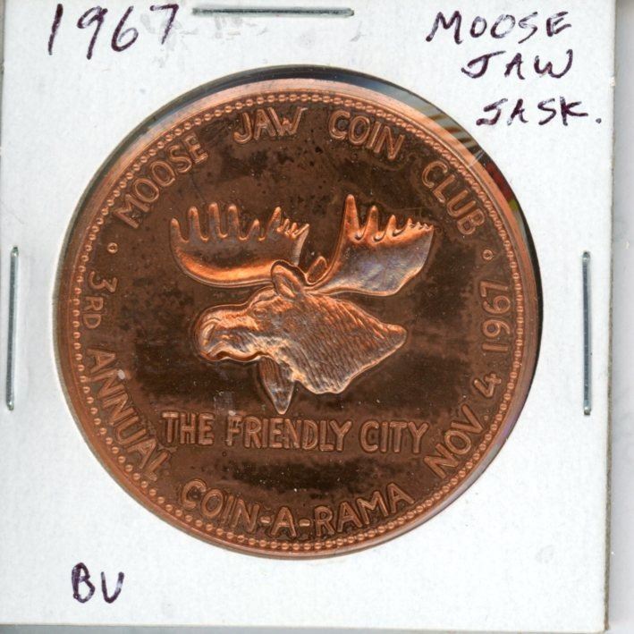 Moose Jaw, Saskatchewan. 1967 medal issued by the Moose Jaw Coin Club to celebrate the 3rd Annual Coin-a-Rama and Canada’s Confederation. BU.