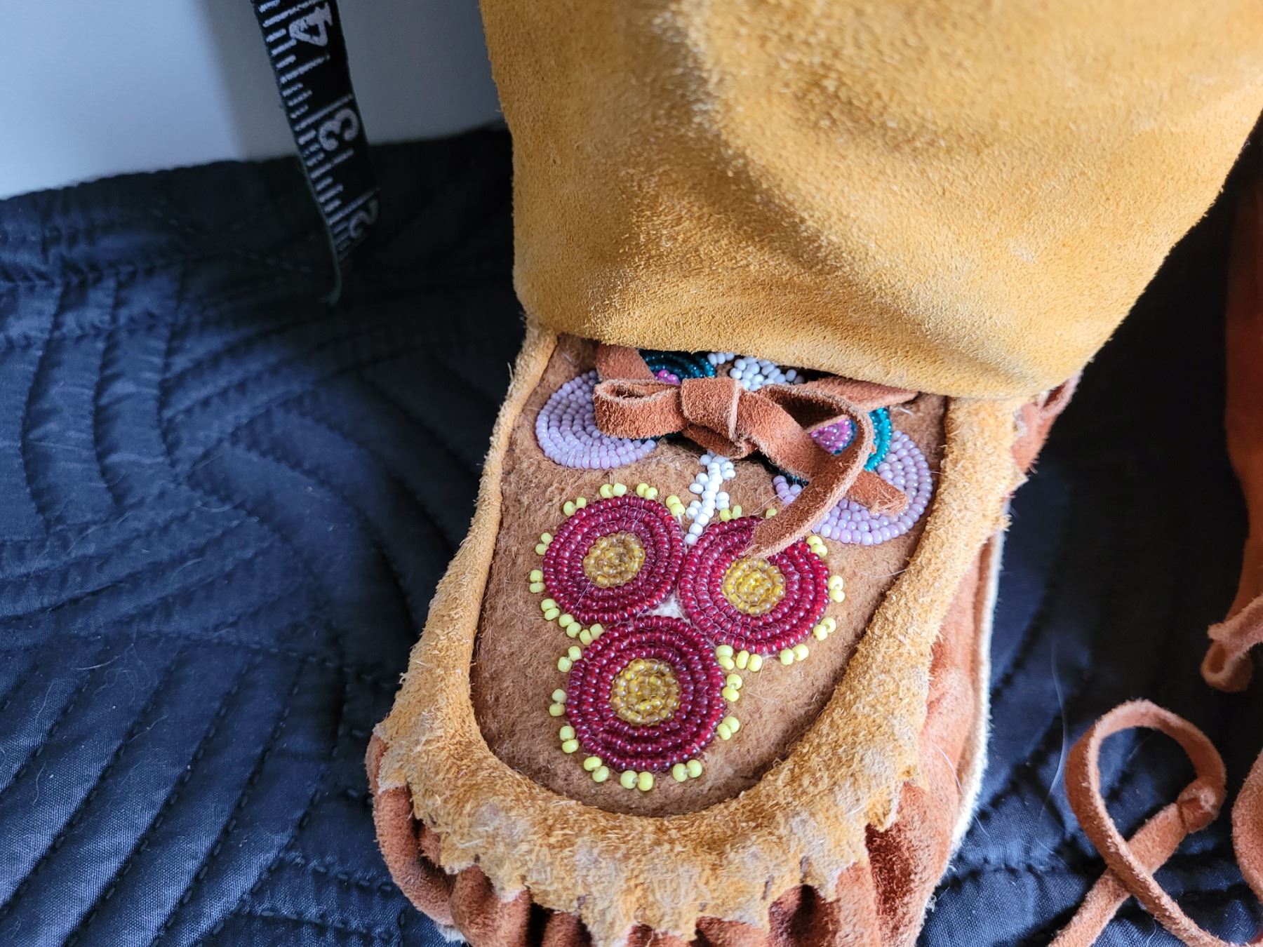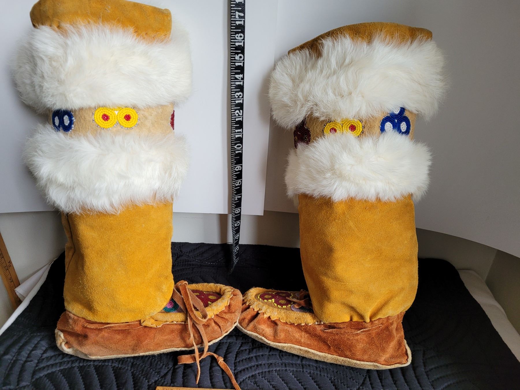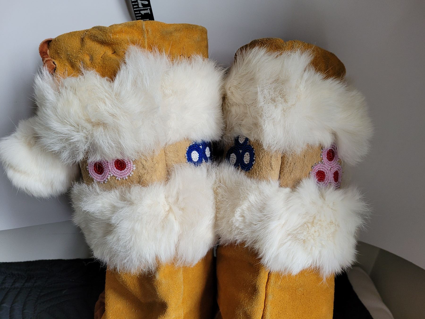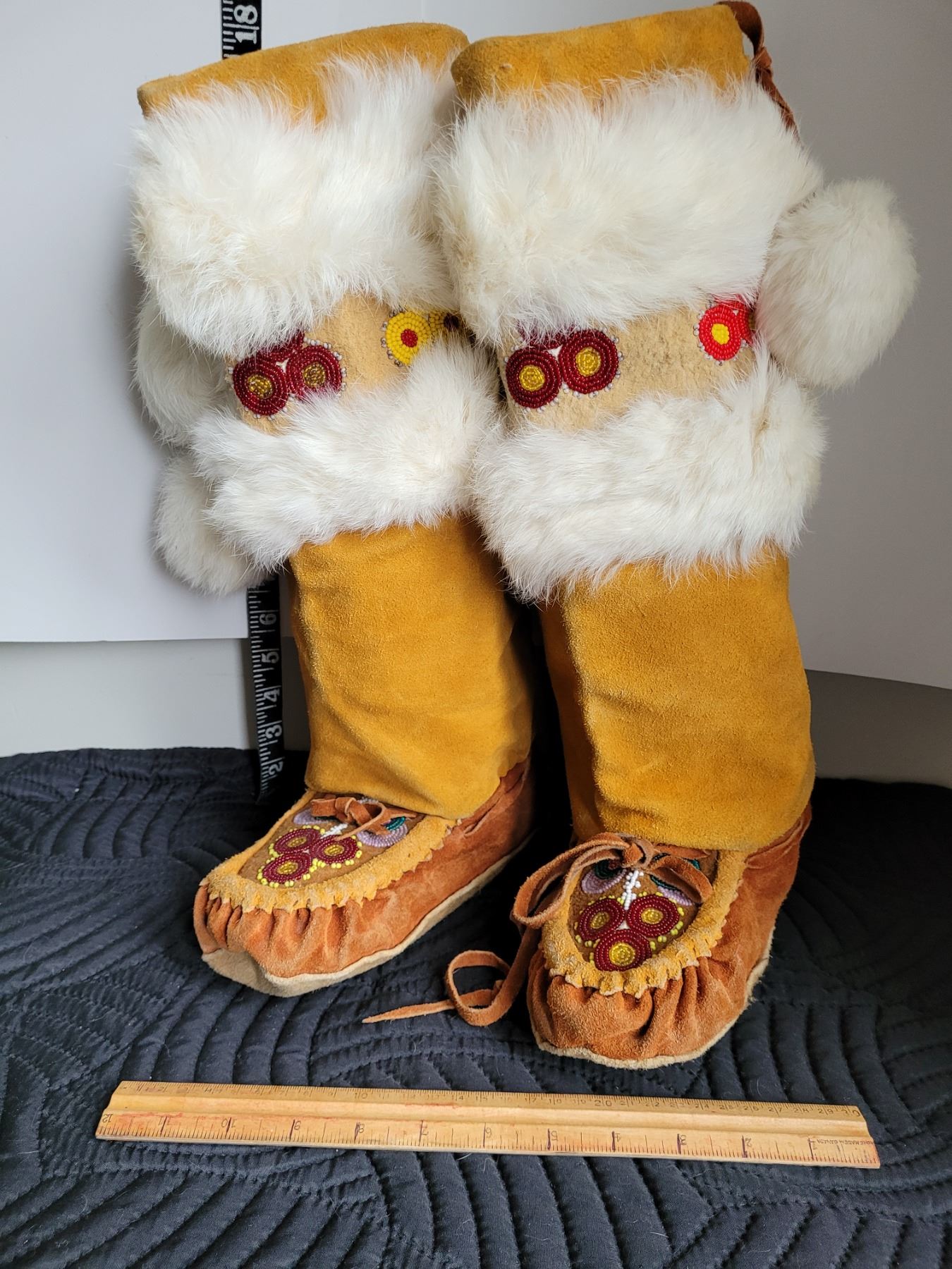 Moose hyde, beaded mukluks. Size appox. Ladies 7-9