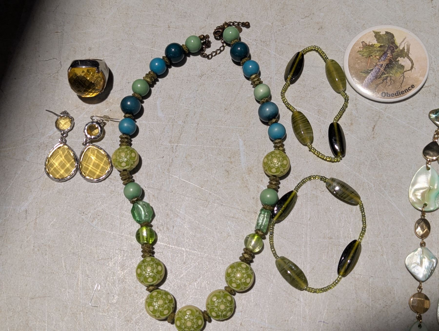 Mother Of Pearl Abalone w/ gold Glass Bracelet