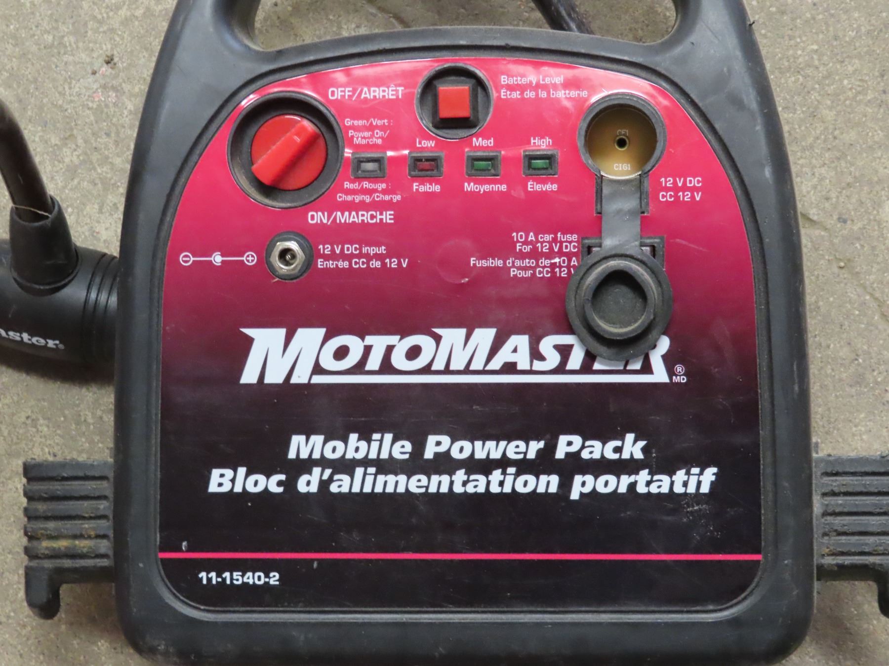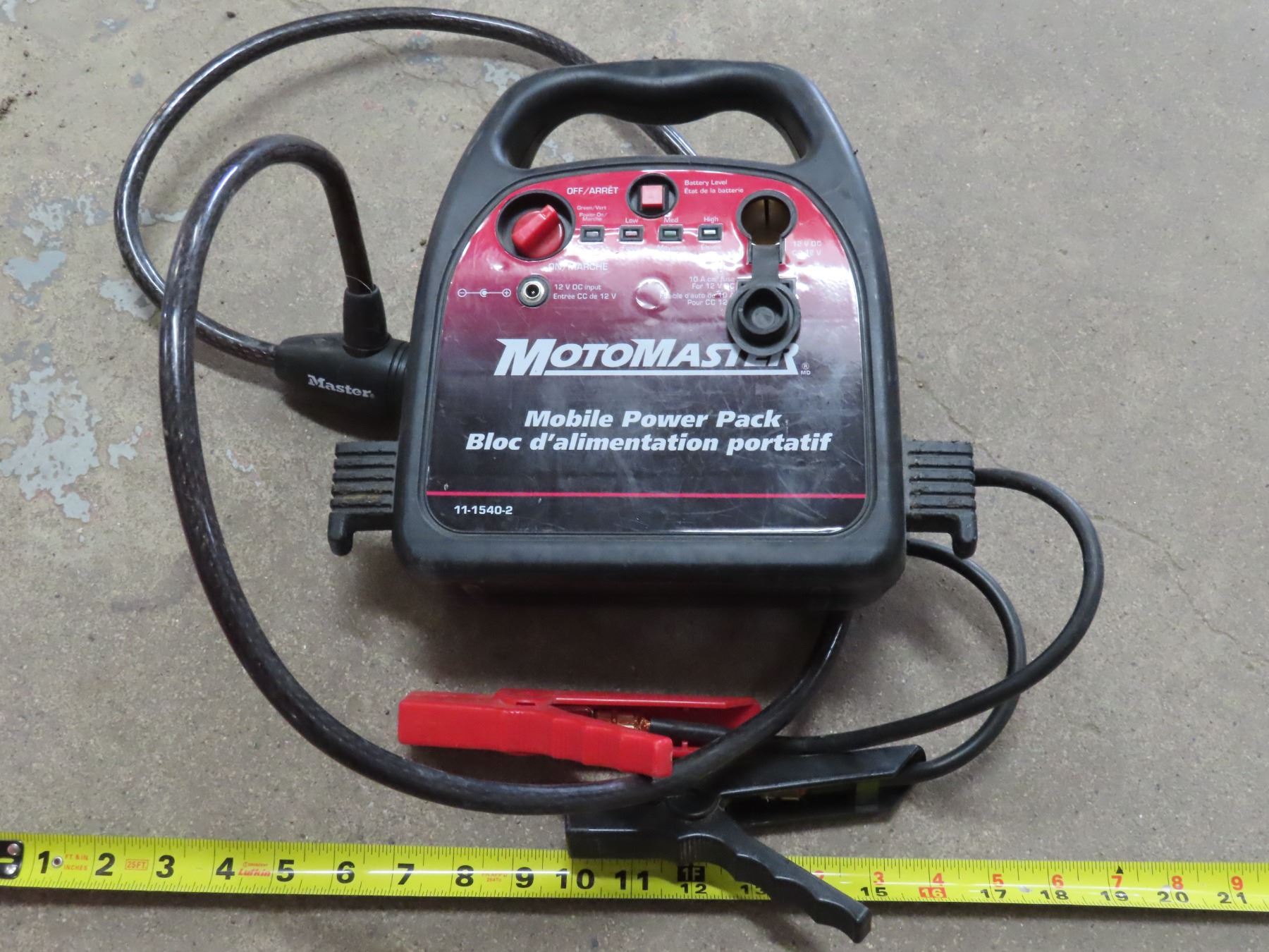 MotoMaster Mobile Power Pack booster + Master lock cord (no key)