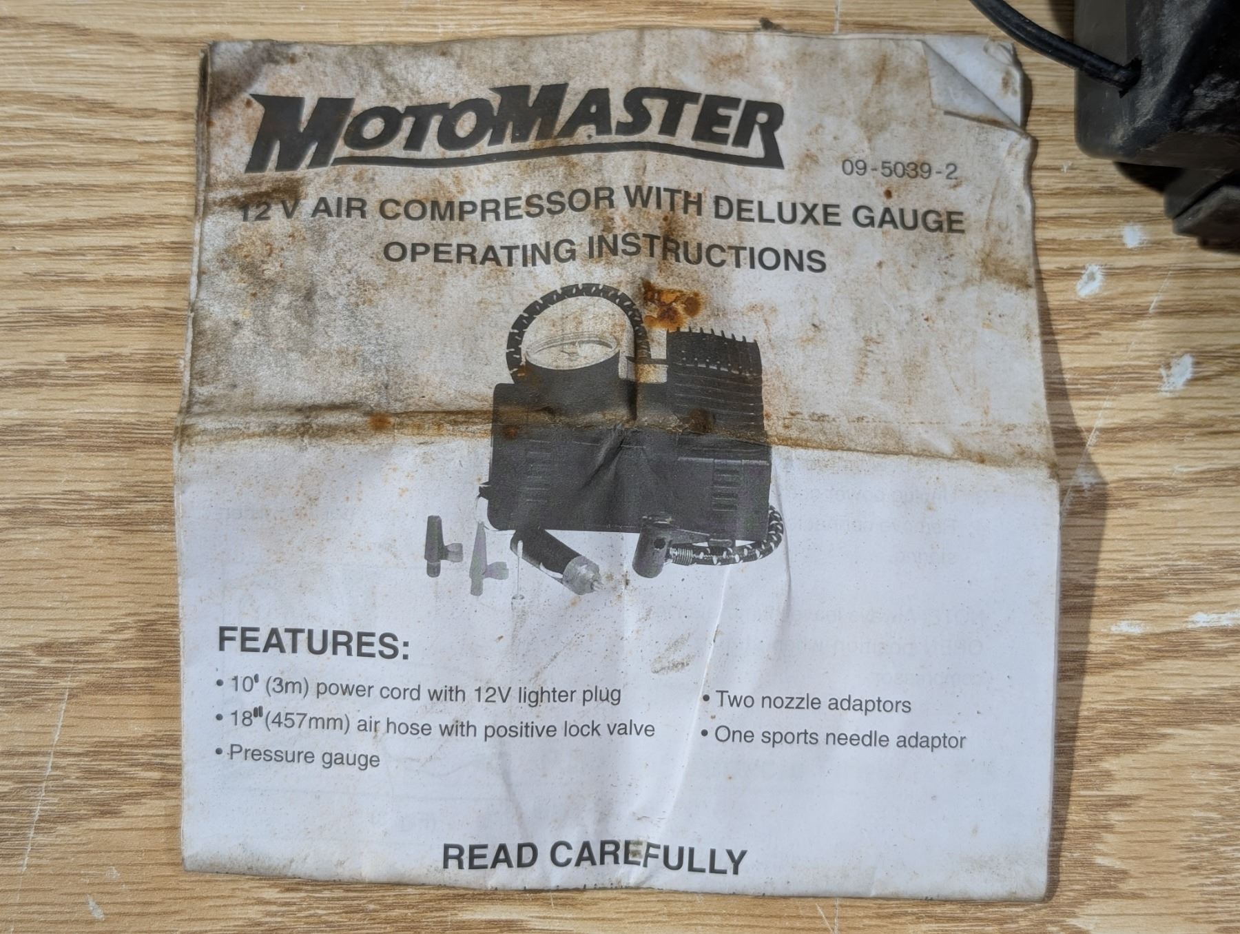 Motor Master Mini Air Compressor 250 PSI w/ Manual (works)