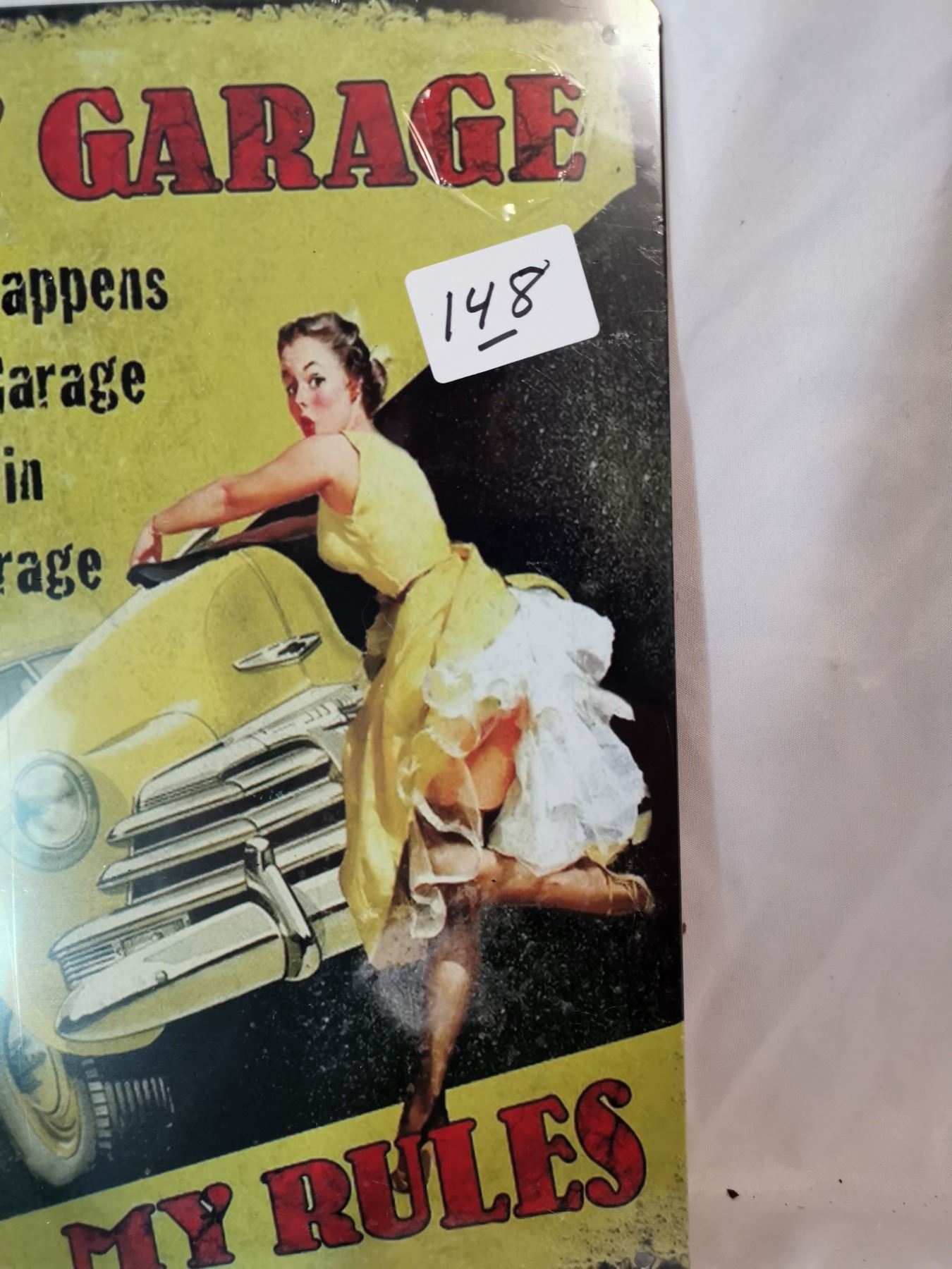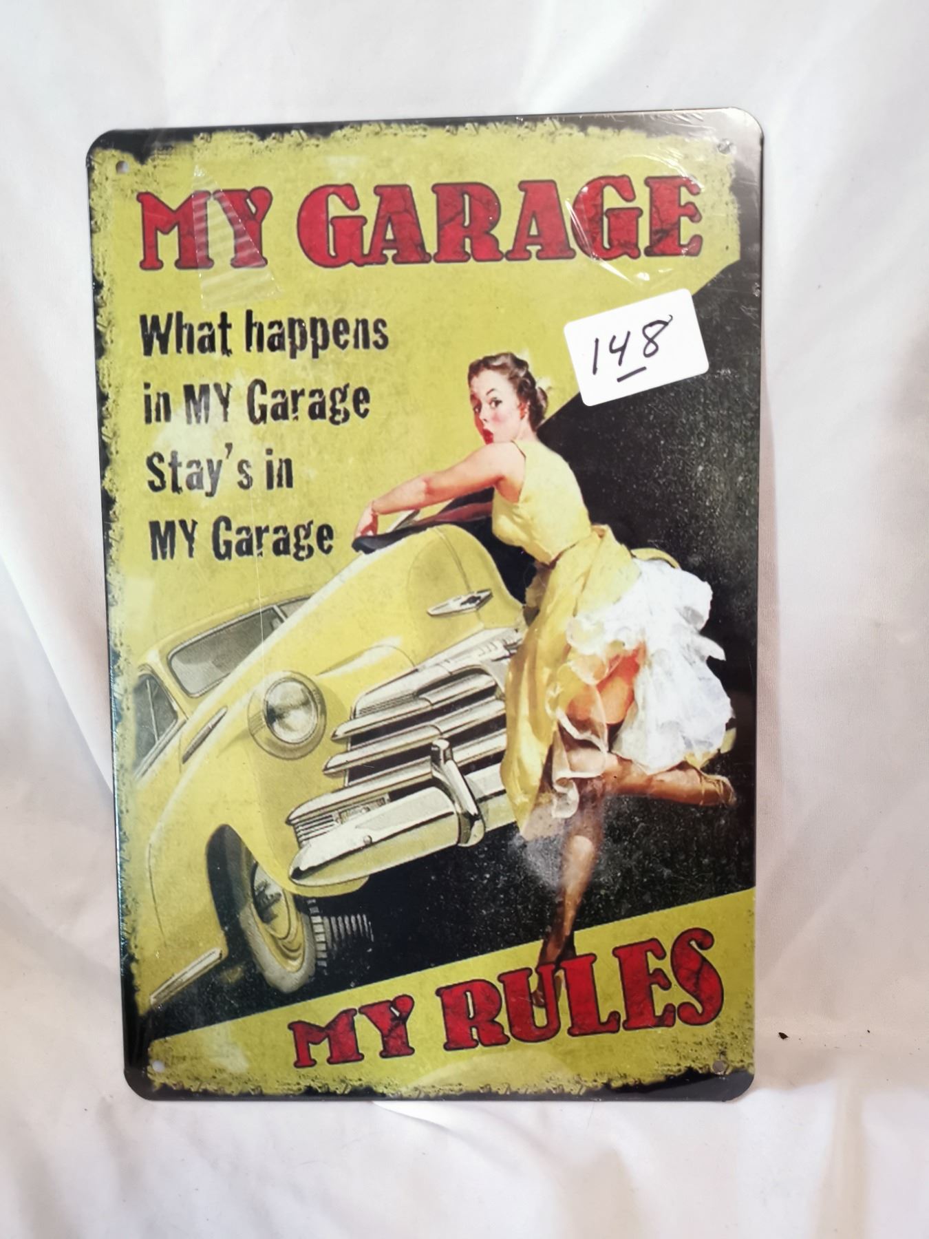 “My Garage My Rules” Pin Up Tin Sign, 12x8”