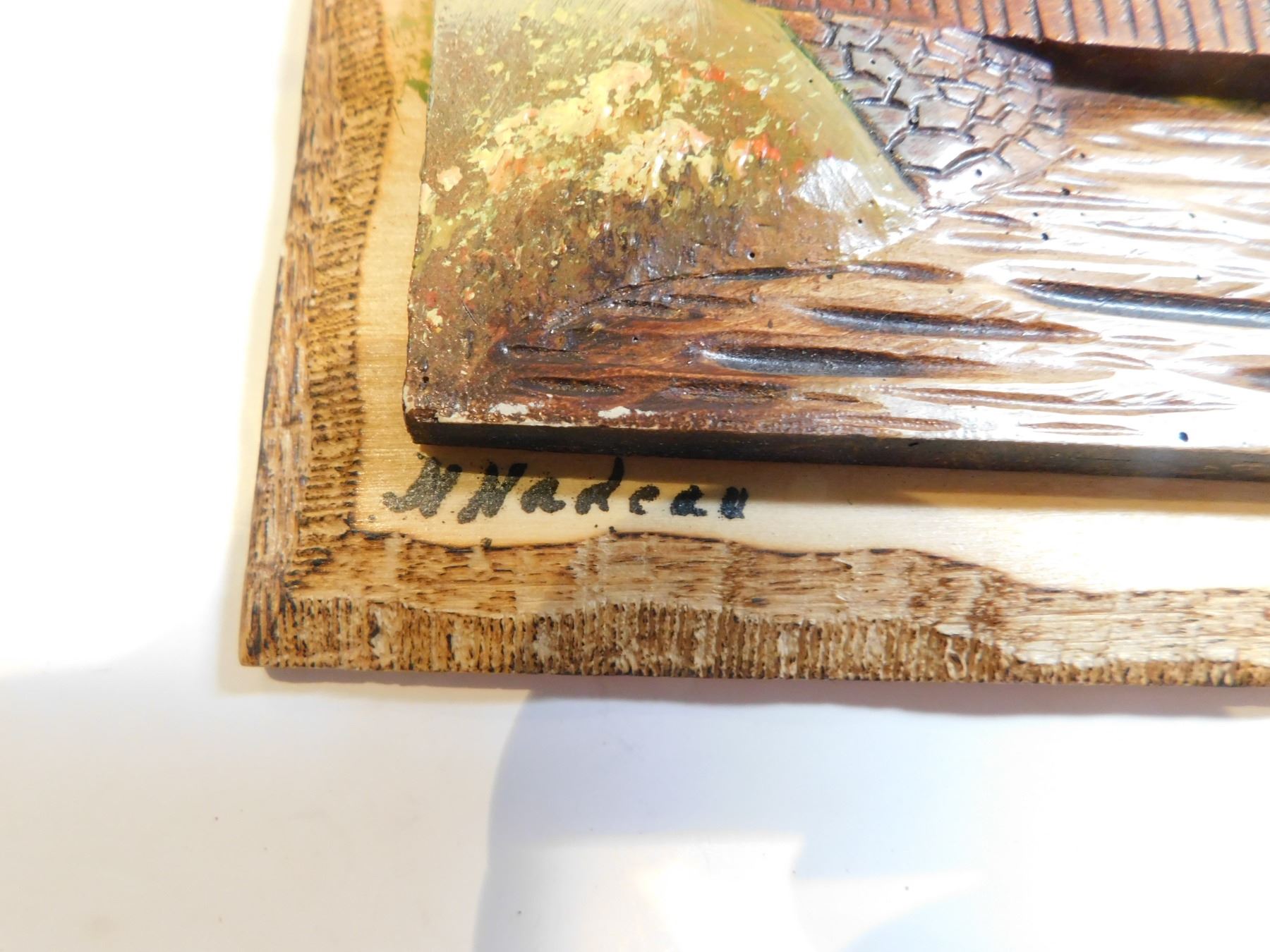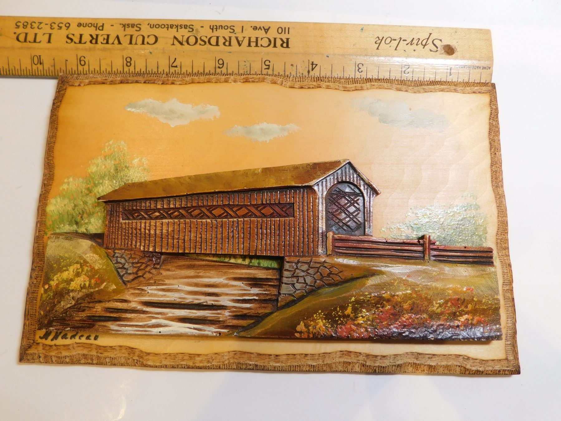 NADEAU SIGNED CARVED COVERED BRIDGE WALL HANGING