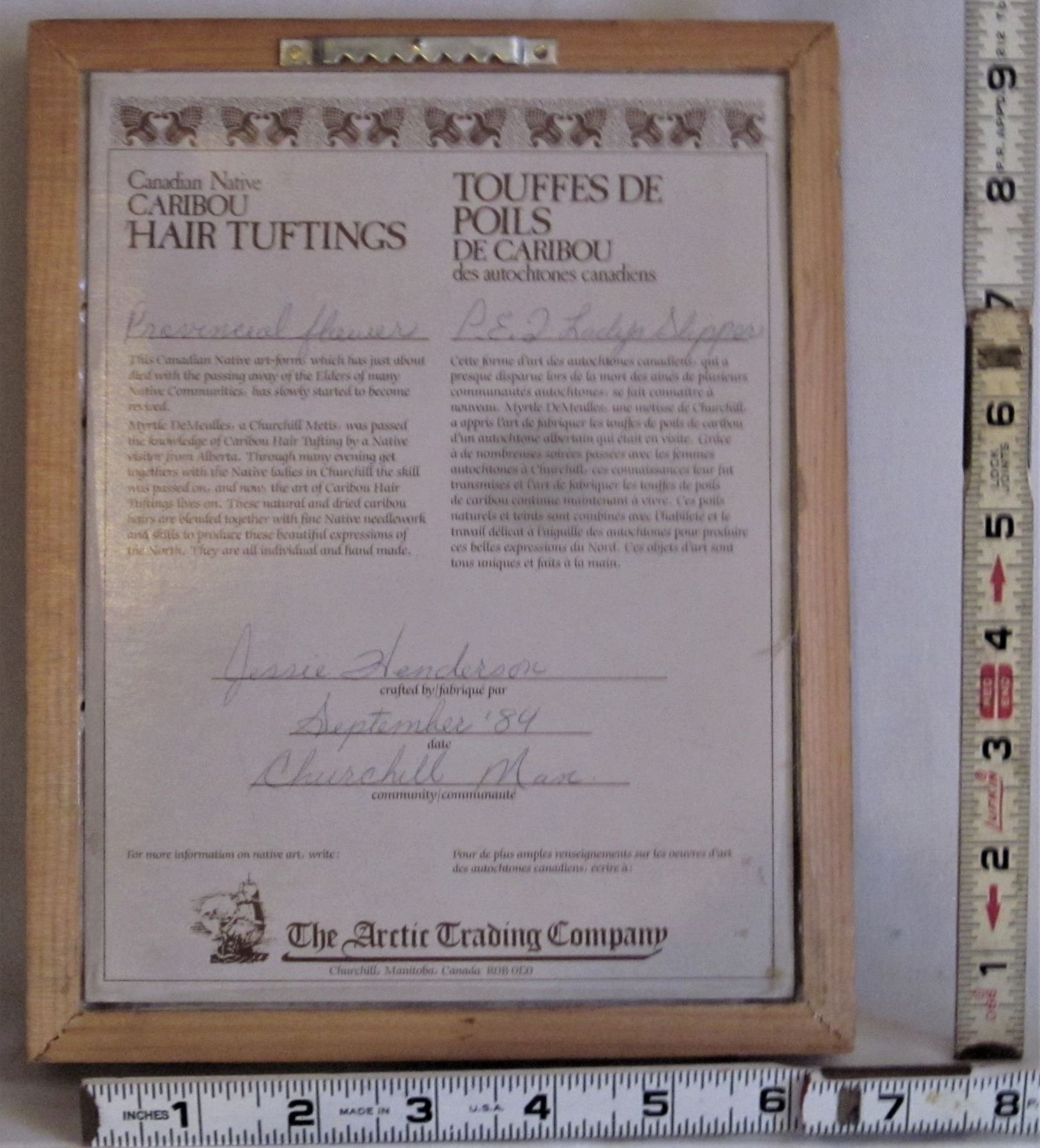 NATIVE CANADIAN CARIBOU HAIR TUFTING- "PEI LADY SLIPPER" FRAMED AND MATTED