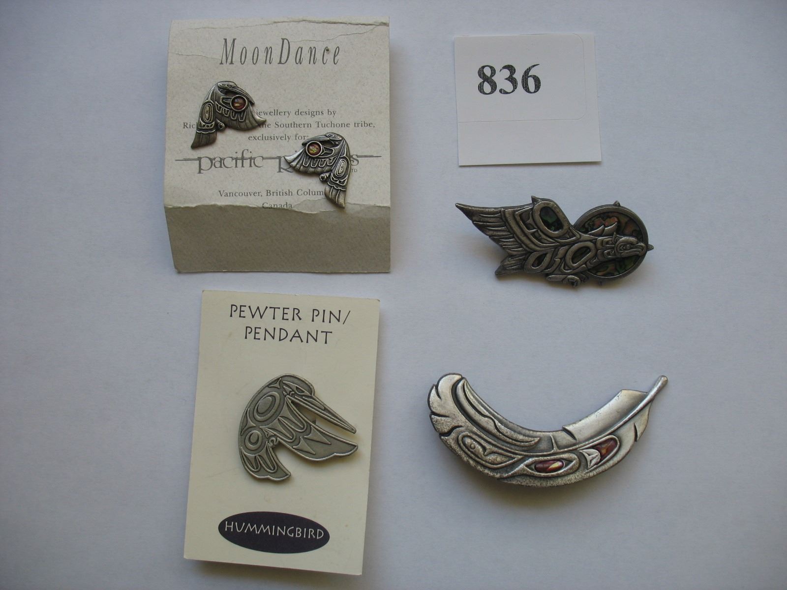 NATIVE MADE PEWTER PIN / PENDANT - BROOCHES and EAR RINGS - 4 Pieces
