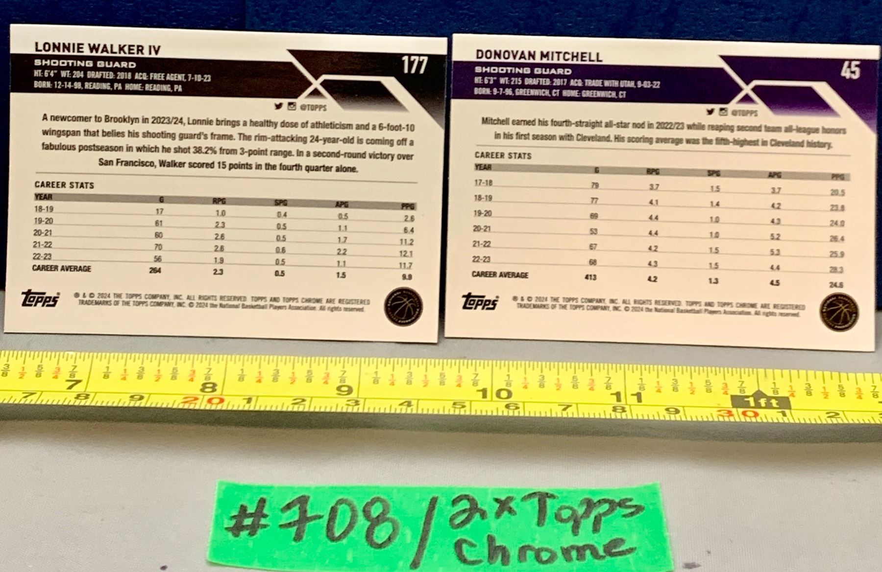 NBA Basketball - 2 x Topps Chrome 2023 Lonnie Walker & Donovan Mitchell