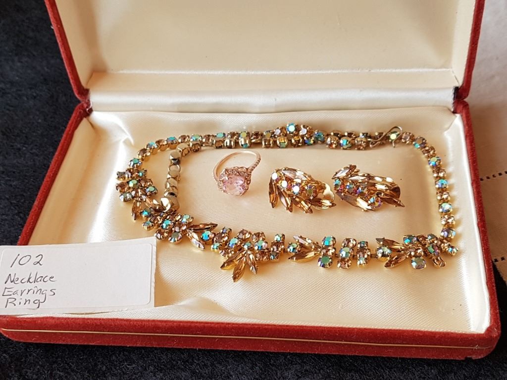 NECKLACE, EARRINGS & STERLING RING