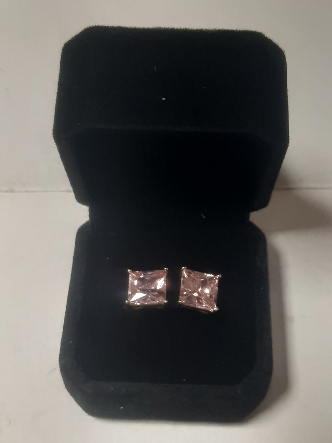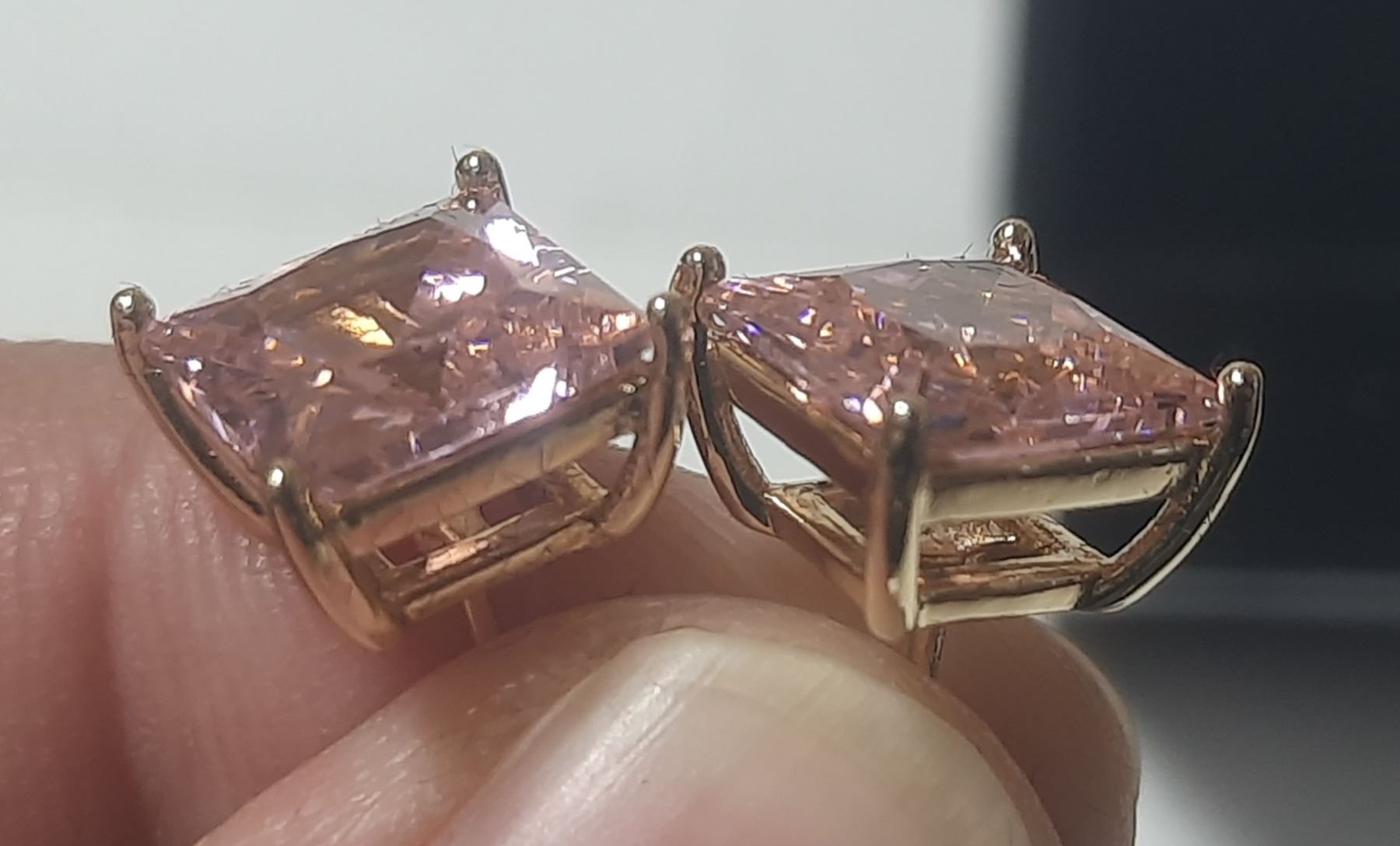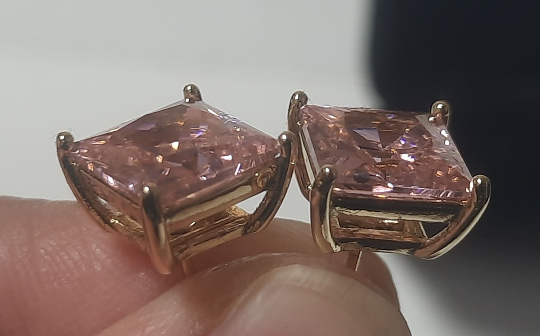NEW 14K Gold Plated 3.0ct Each Princess Cut Pink Simulated Diamond (CZ) Stud Earrings