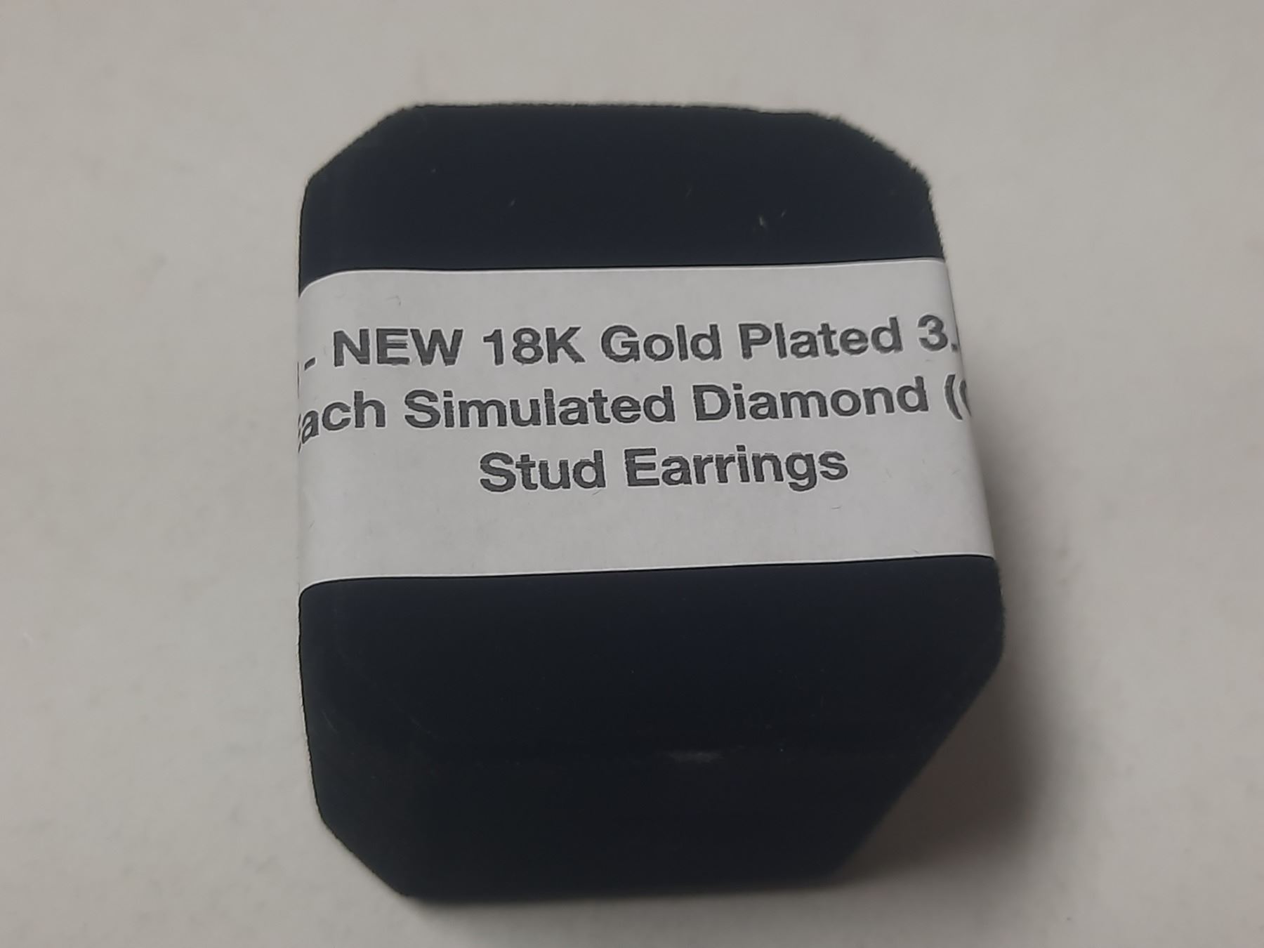 NEW 18K Gold Plated 3.0ct Each Simulated Diamond (CZ) Stud Earrings
