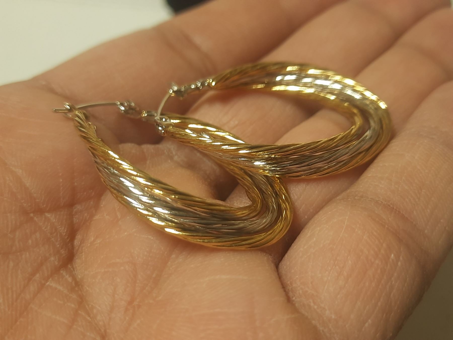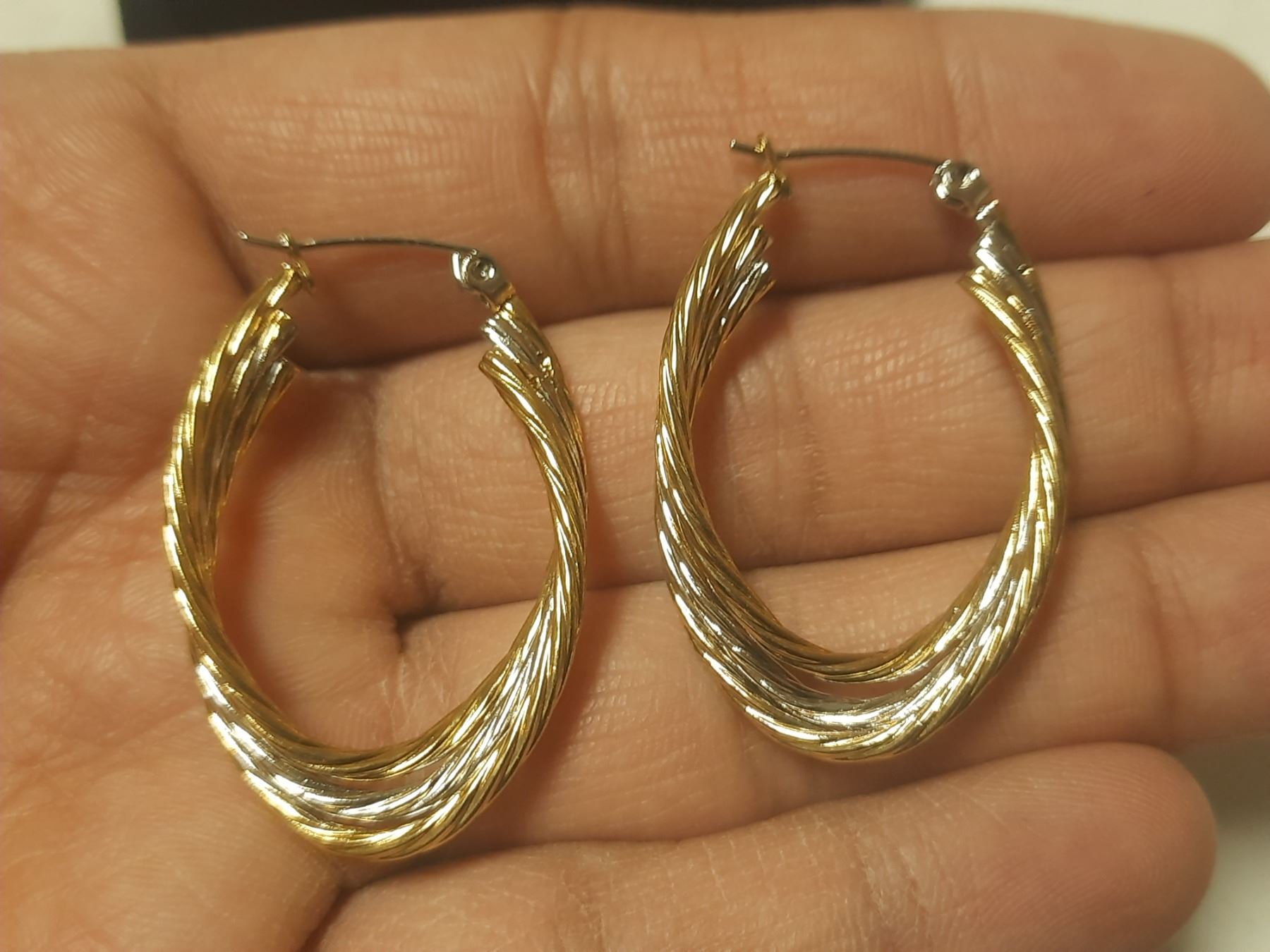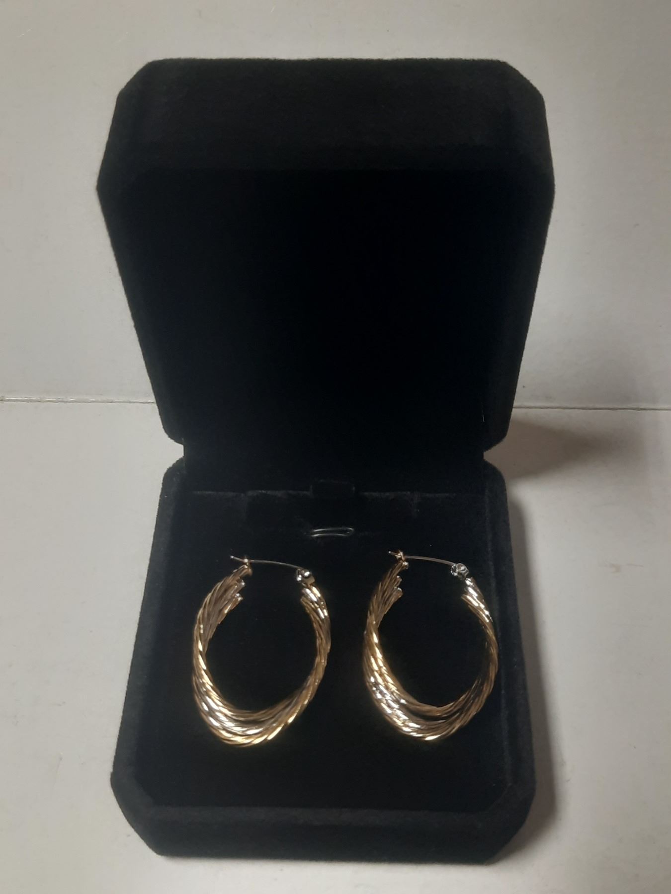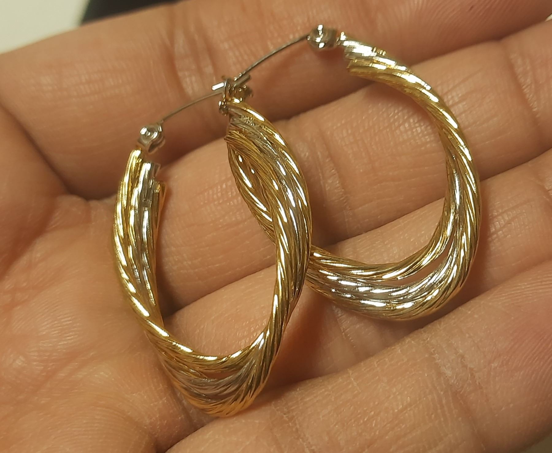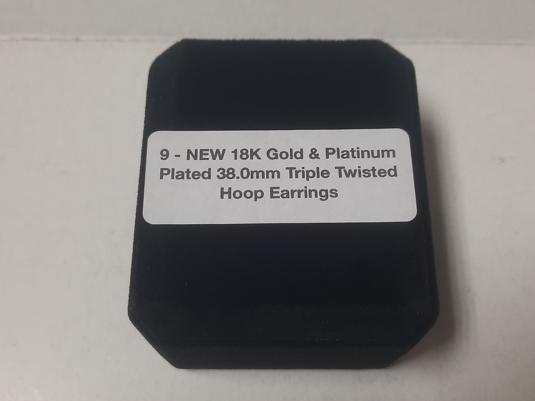 NEW 18K Gold & Platinum Plated 38.0mm Triple Twisted Hoop Earrings