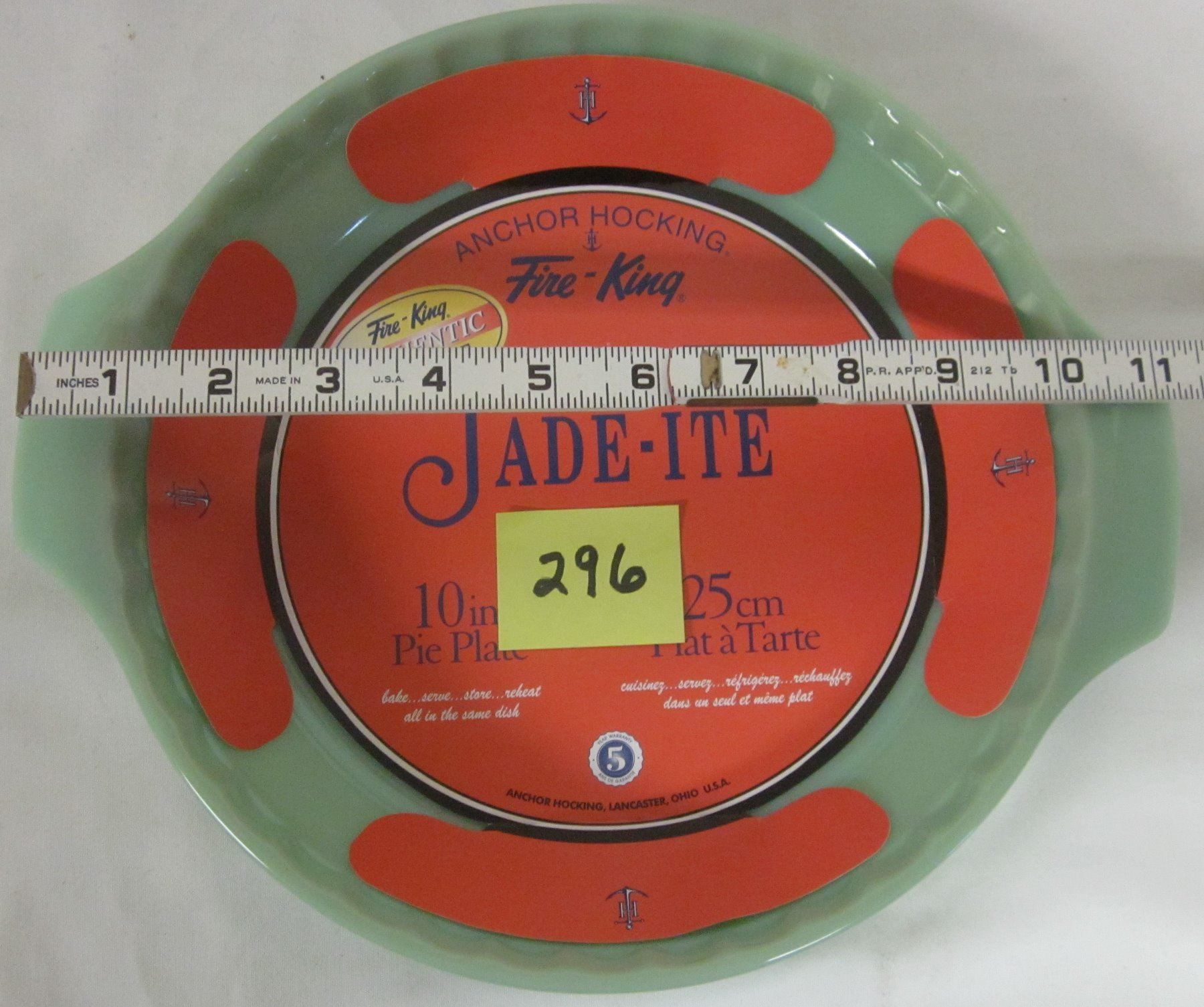 NEW Anchor Hocking Fire King 2000 Jade-ite green 10" pie plate, stickers.