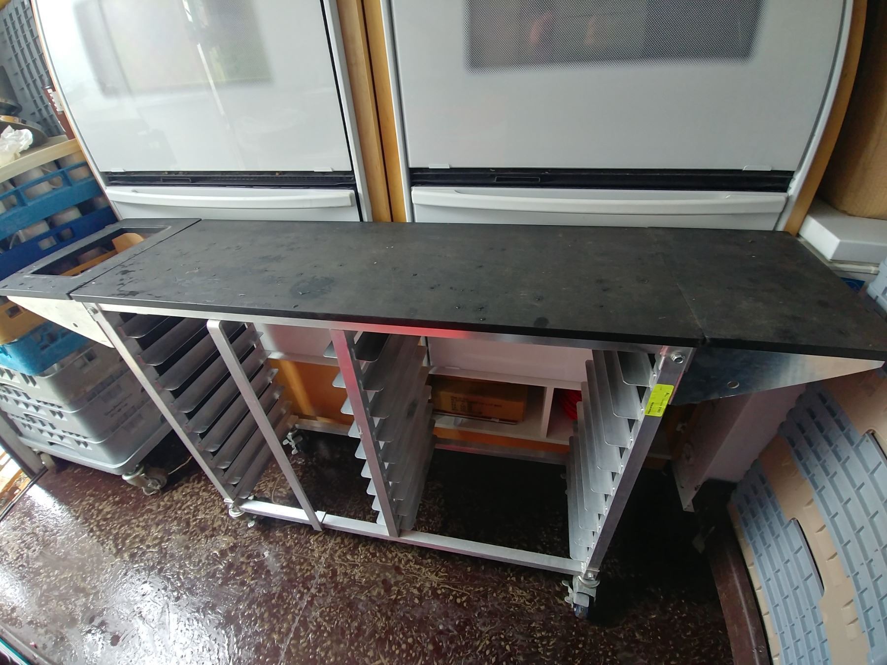 NEW COLAPSIBLE CATERING CART W/ BLK POLY CUTTING BOARD TOP