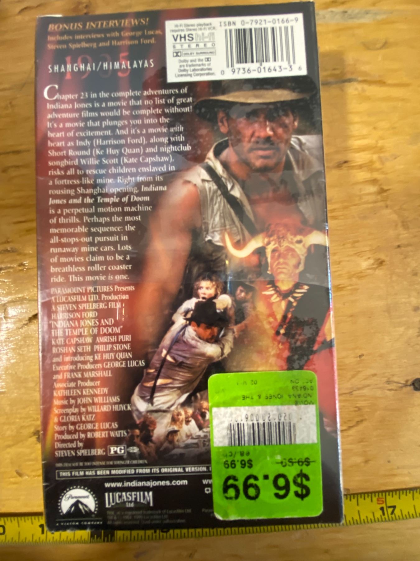 NEW IN ORIGINAL WRAP Indiana Jones VHS Indiana Jones “Temple of Doom” Chapter 23 Complete Adventures