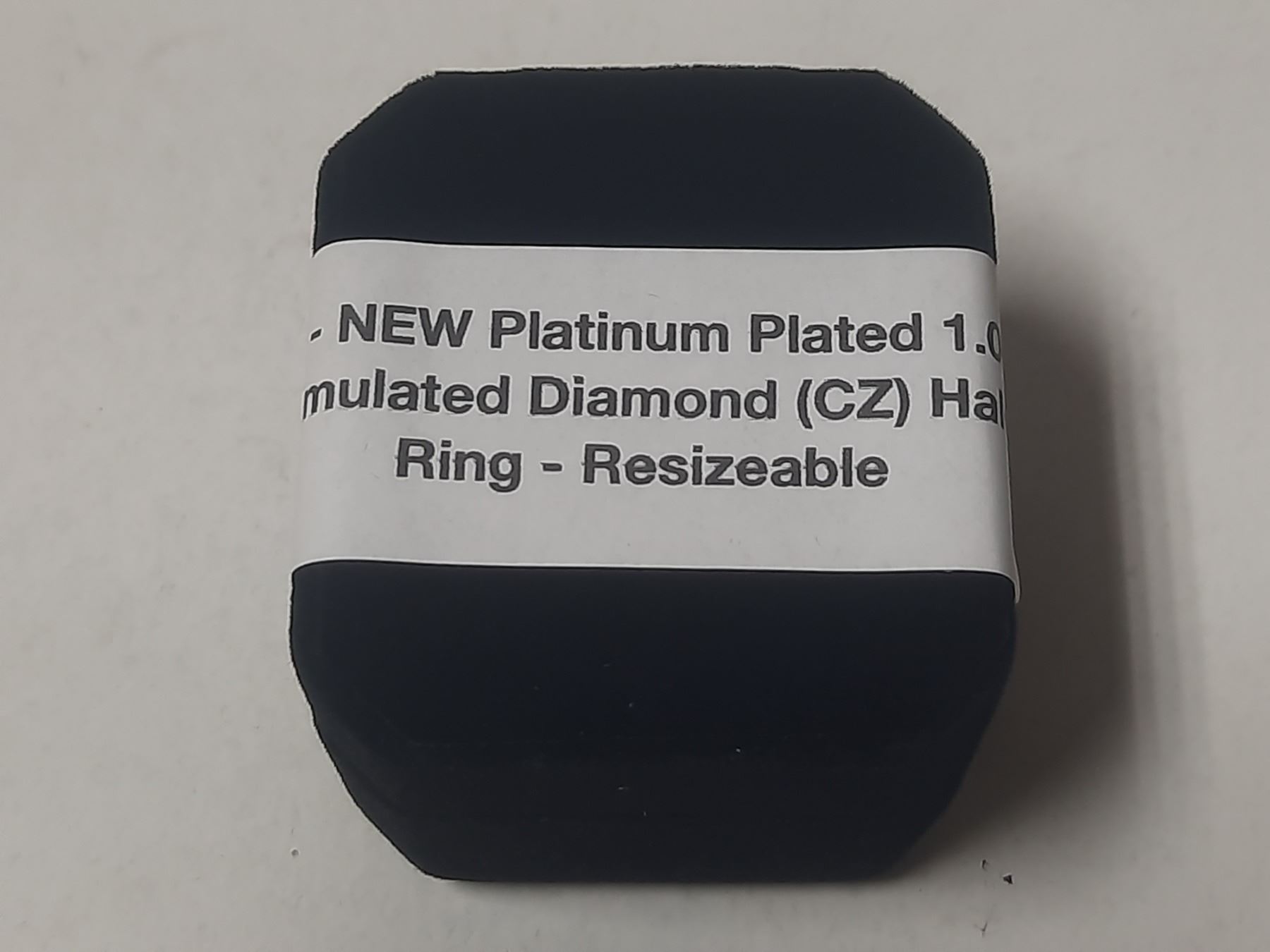 NEW Platinum Plated 1.0ct Simulated Diamond (CZ) Halo Ring - Resizable