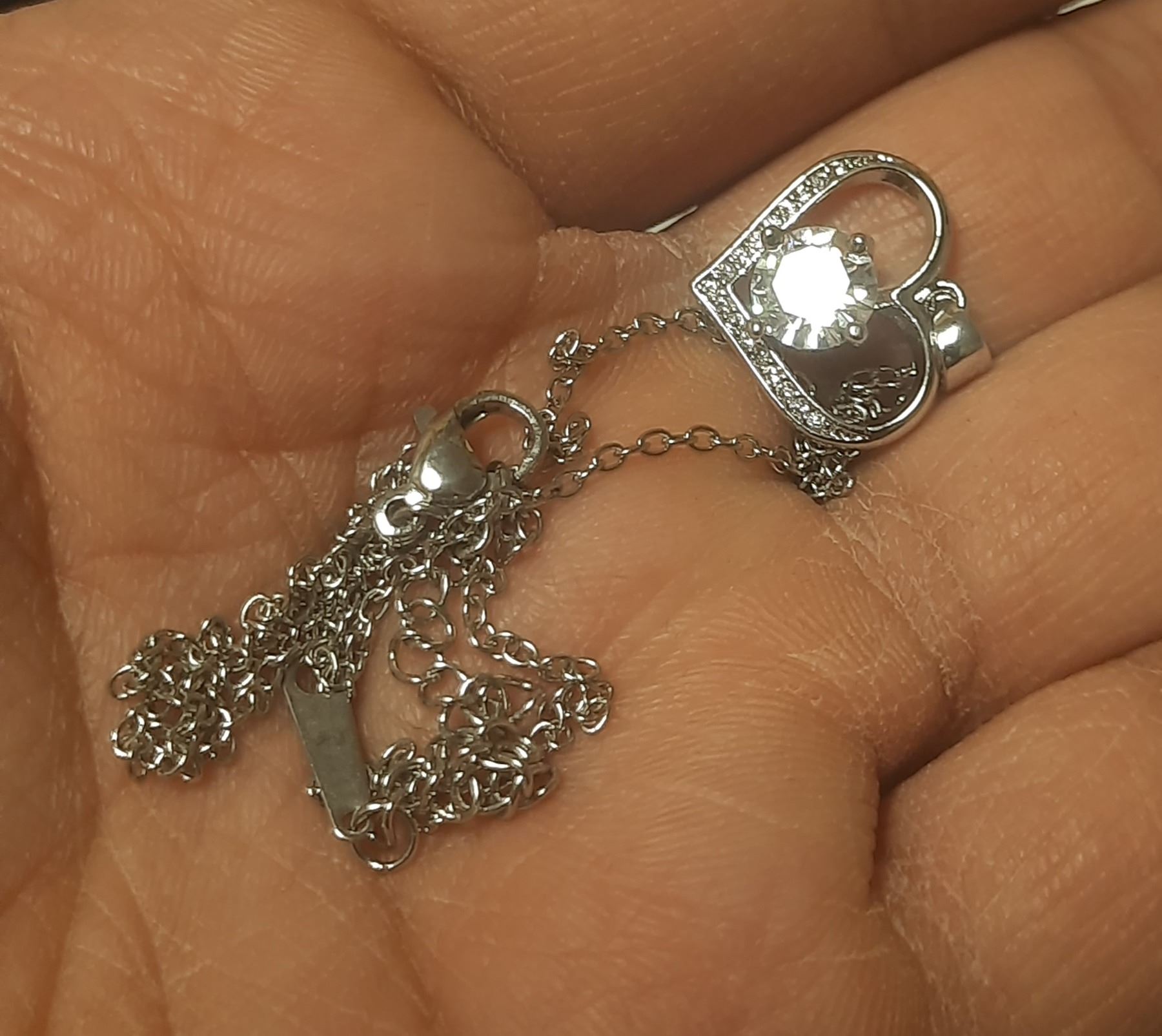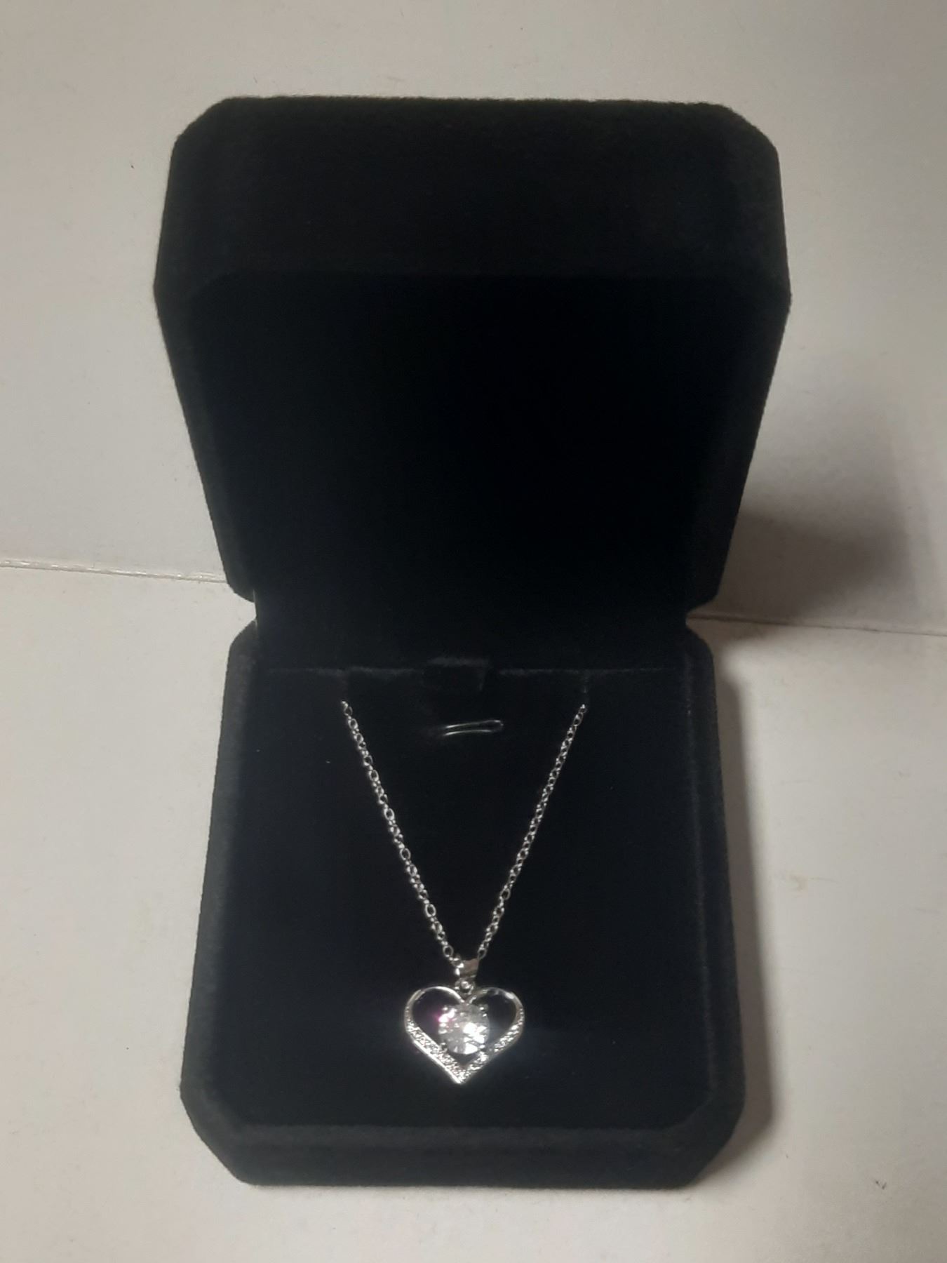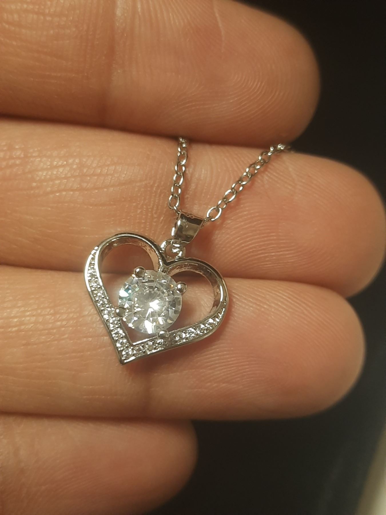 NEW Platinum Plated 1.0ct Simulated Diamond (CZ) Heart Necklace - Chain 16" - 18" Long