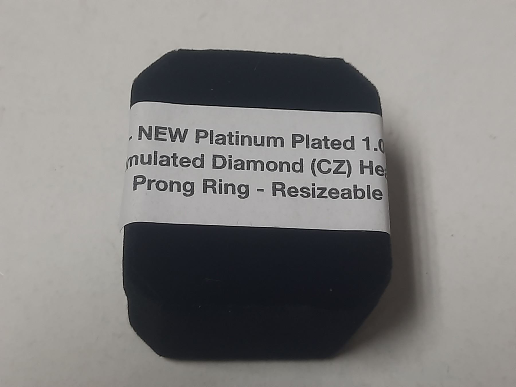 NEW Platinum Plated 1.0ct Simulated Diamond (CZ) Heart Prong Ring - Resizable
