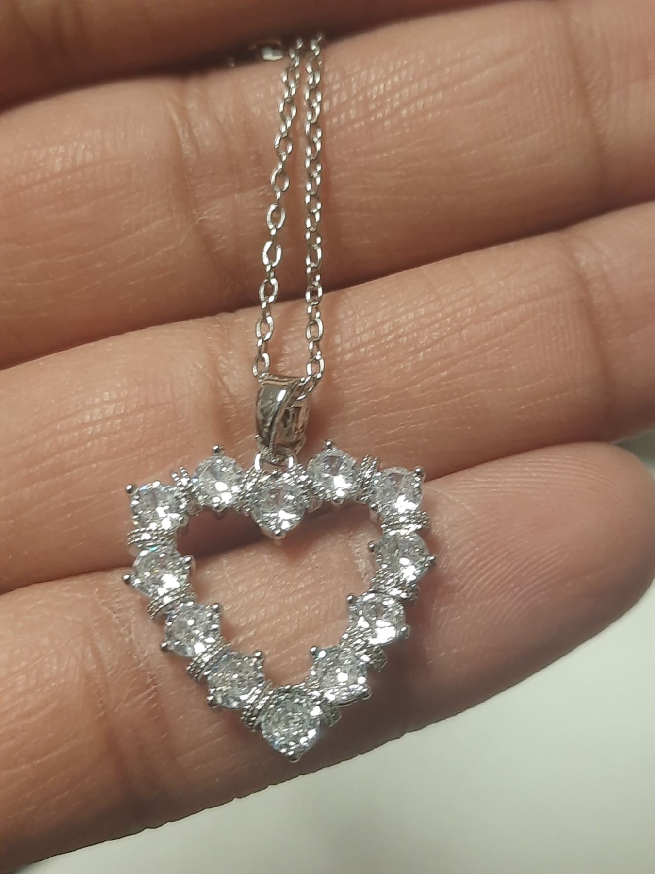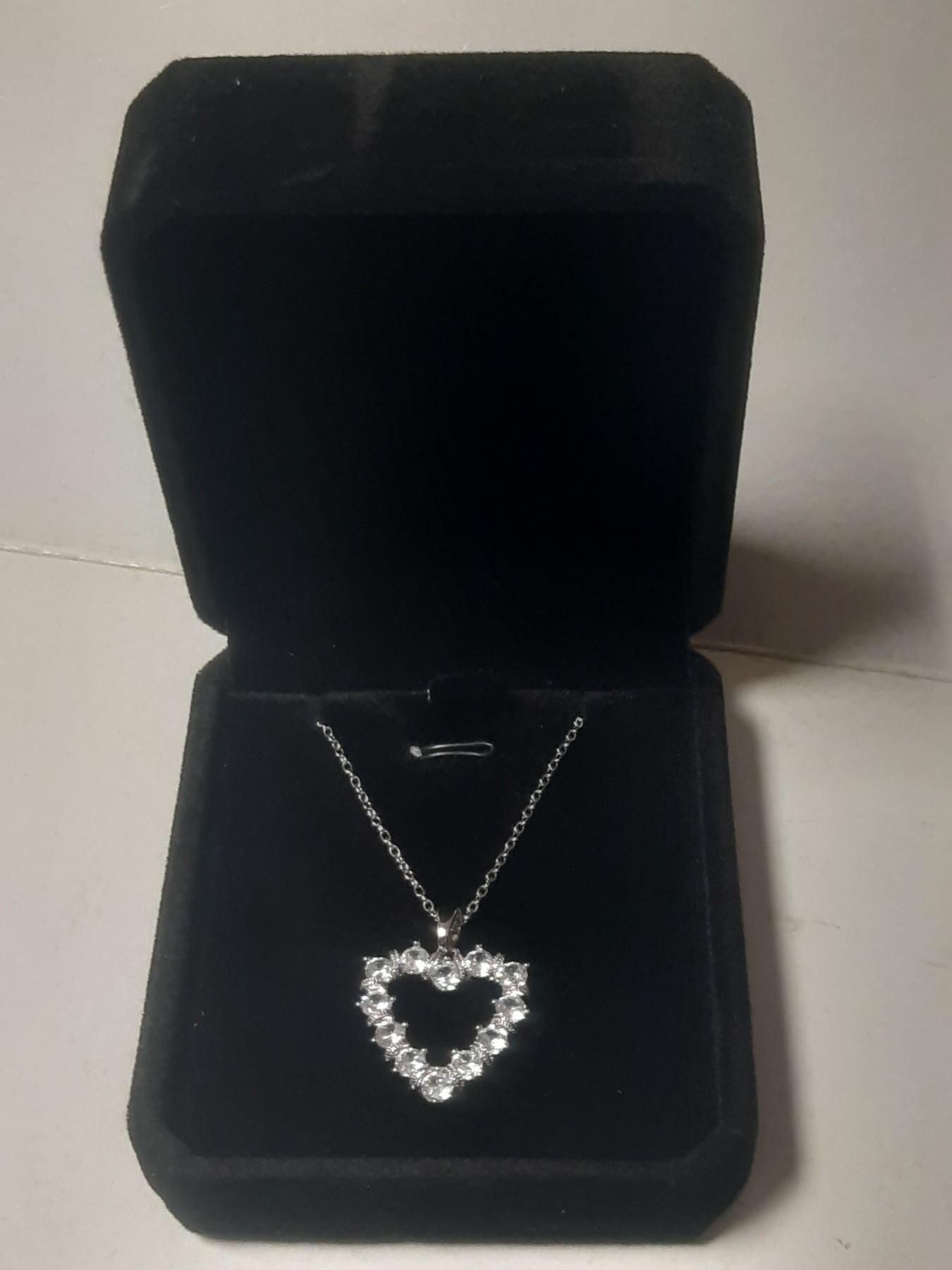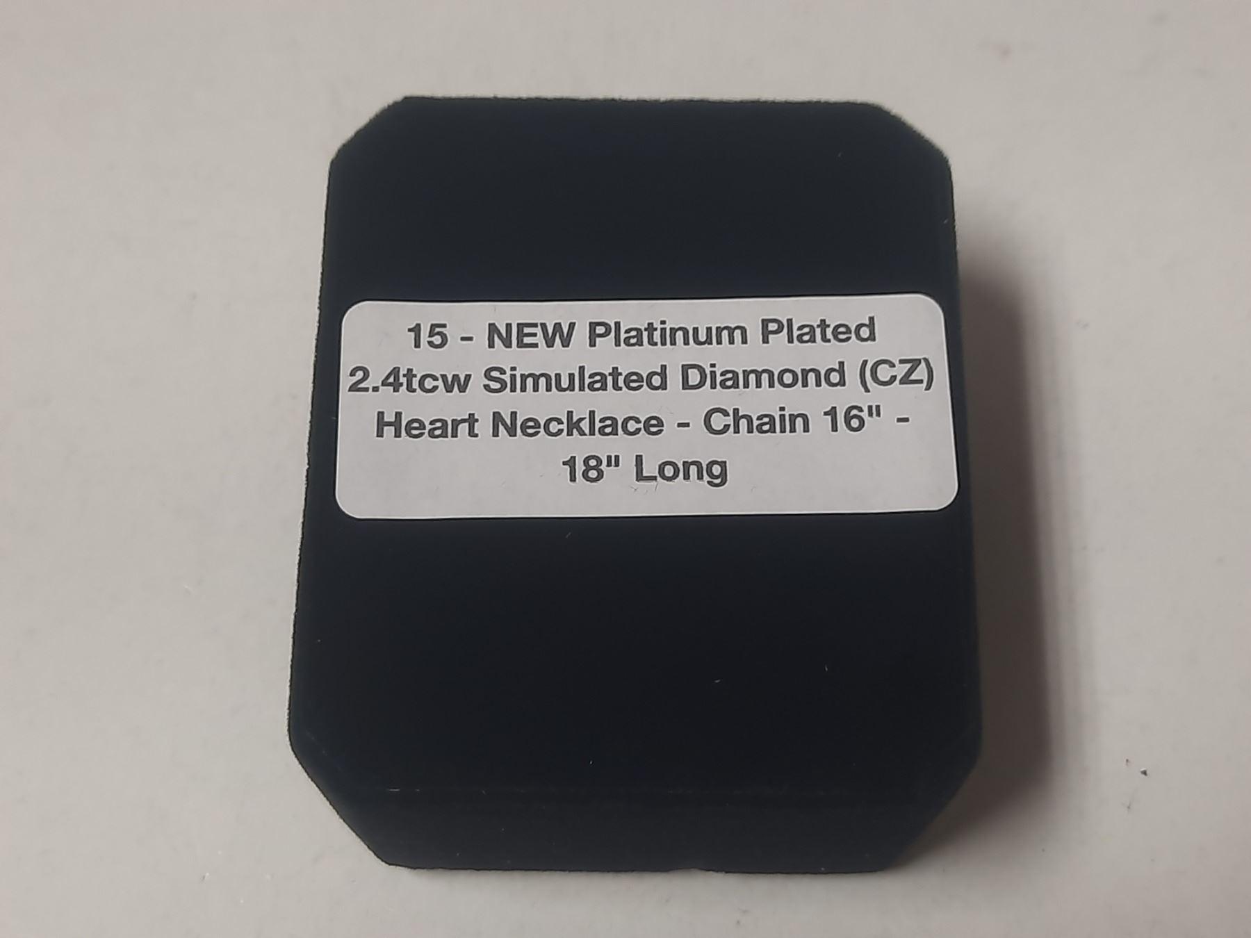 NEW Platinum Plated 1.0ct Simulated Diamond (CZ) Chanel Ring - Resizable NEW Platinum Plated 2.4tcw Simulated Diamond (CZ) Heart Necklace - Chain 16" - 18" Long