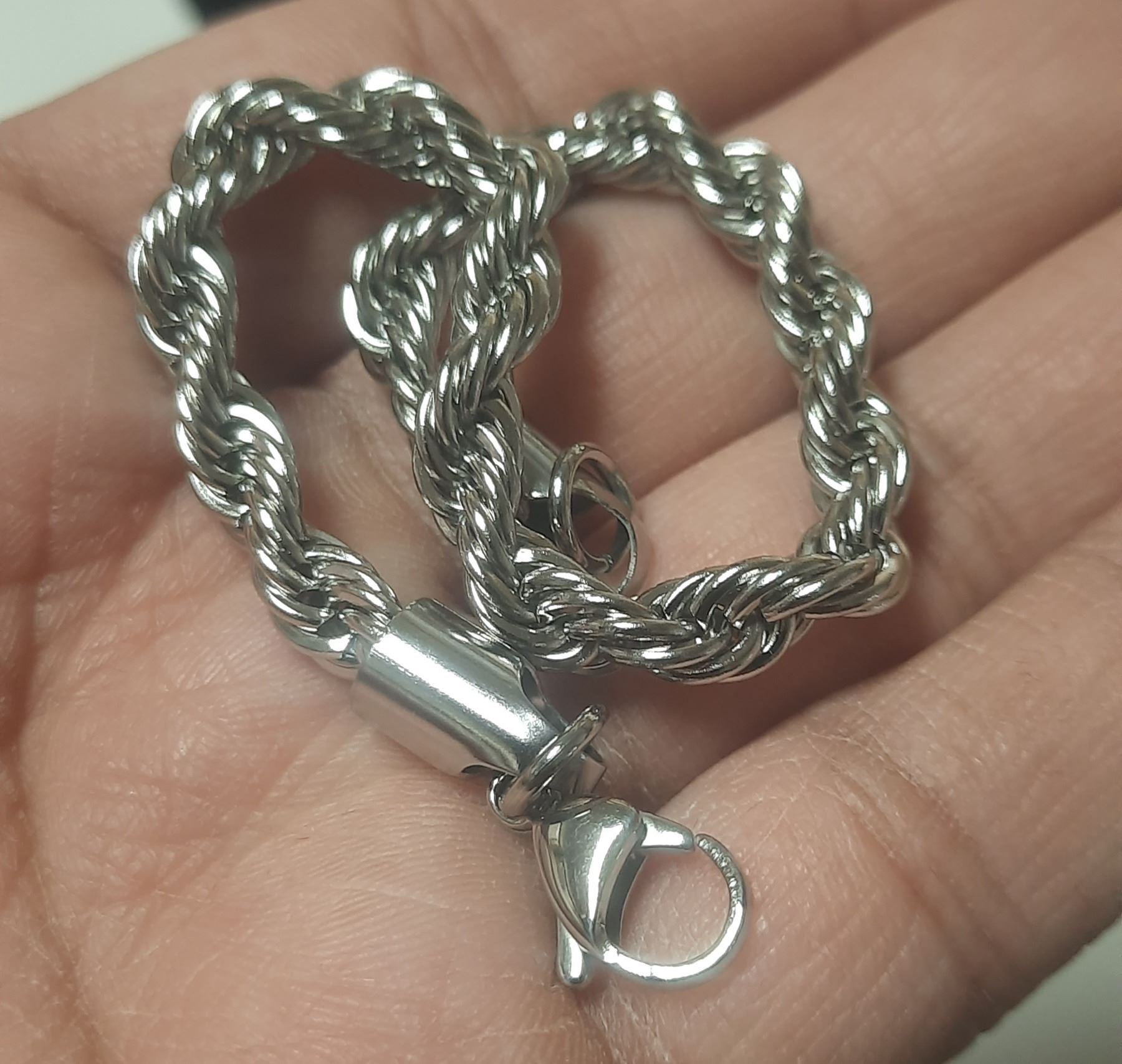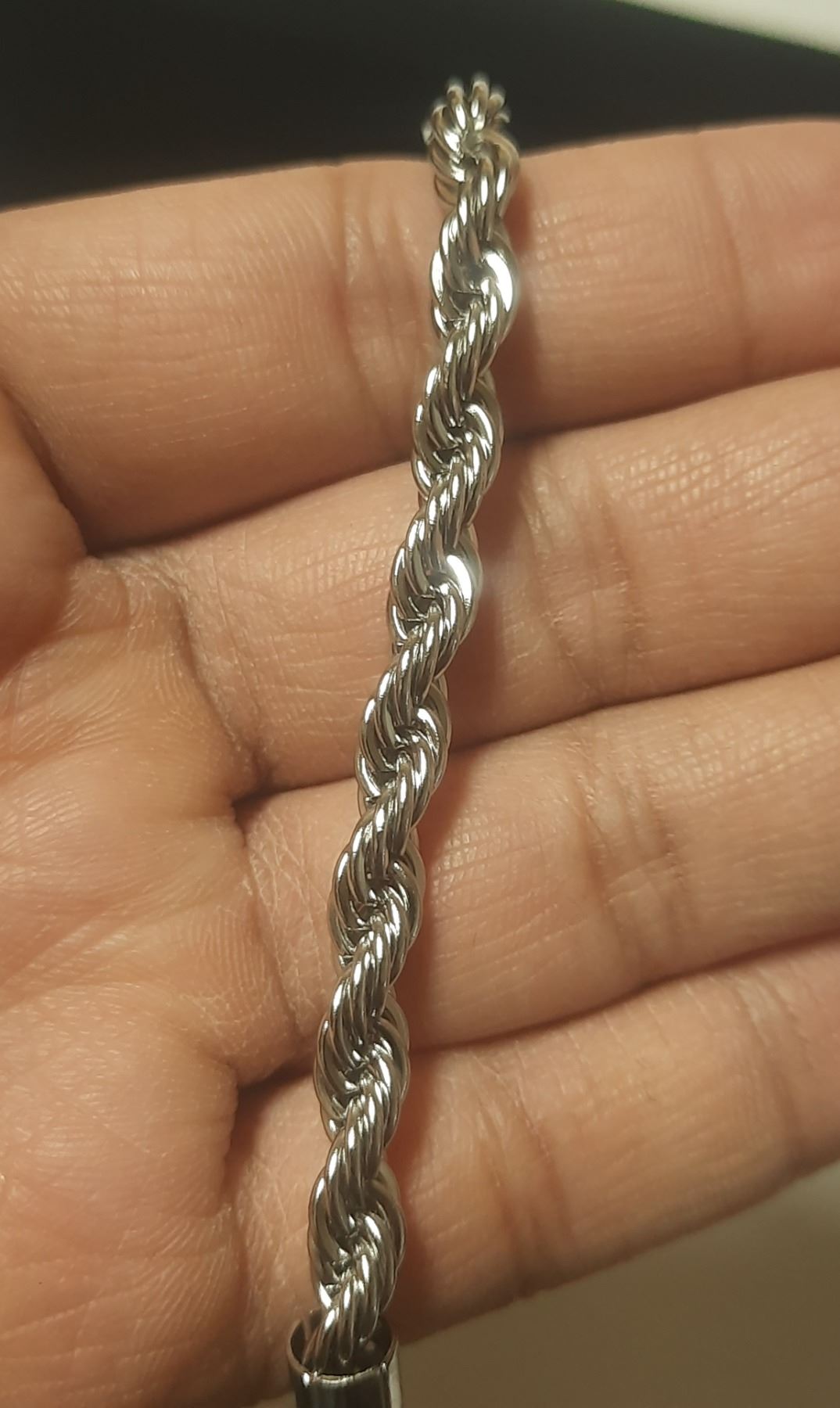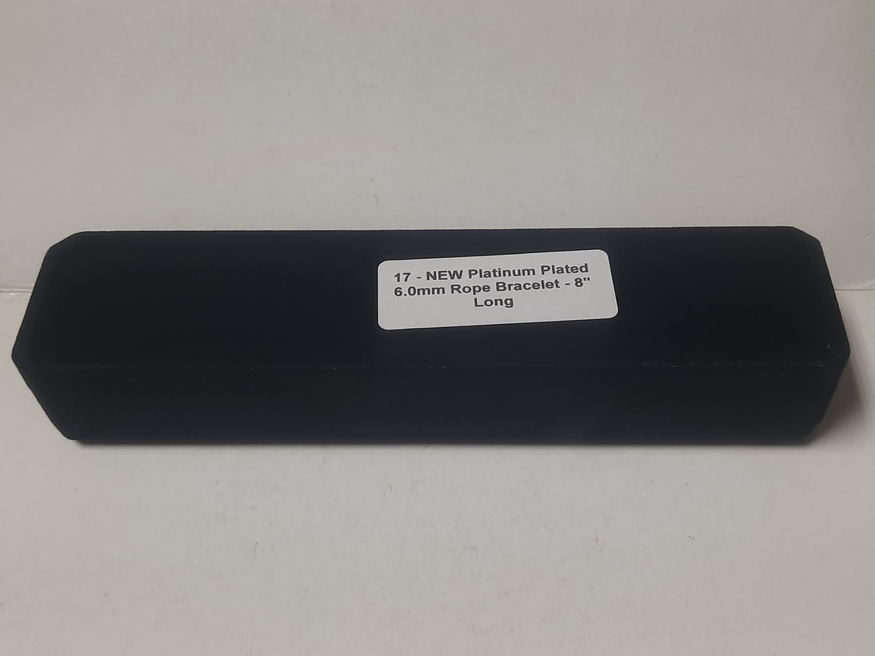 NEW Platinum Plated 4.0mm Princess Cut Simulated Diamond Tennis Bracelet - Adjustable NEW Platinum Plated 6.0mm Rope Bracelet - 8" Long le 7" - 8" Long