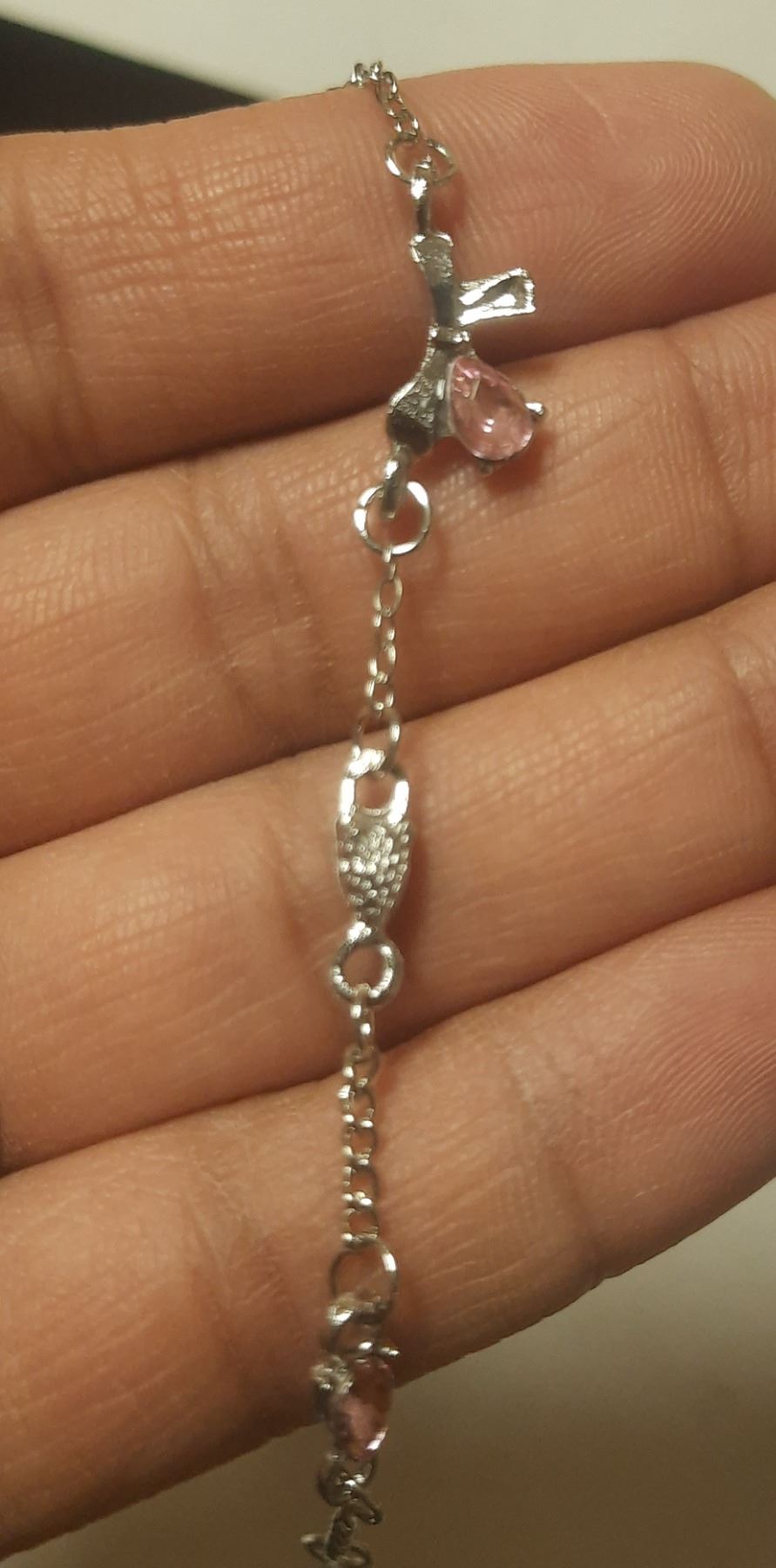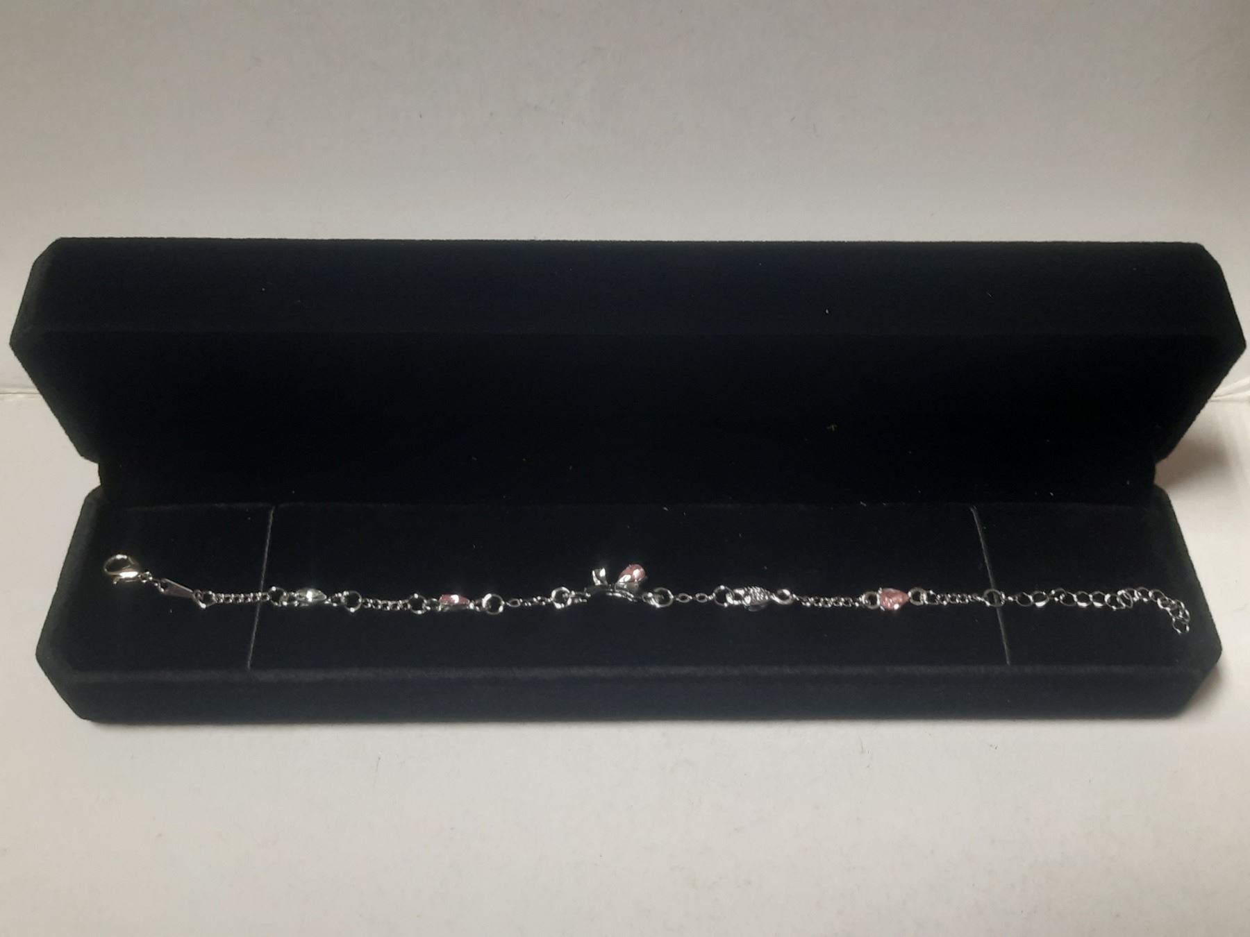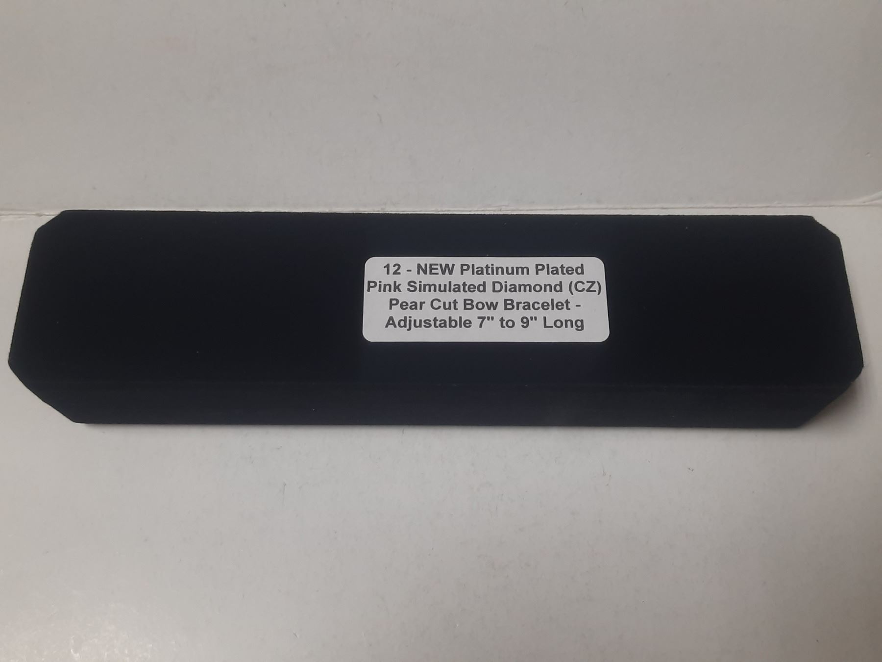 NEW Platinum Plated Pink Simulated Diamond (CZ) Pear Cut Bow Bracelet - Adjustable 7" to 9" Long
