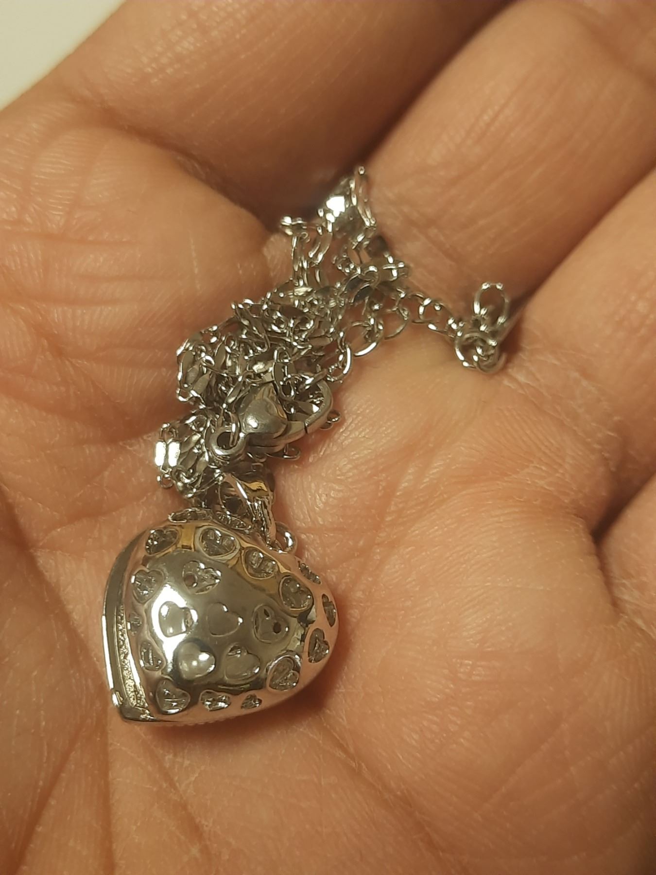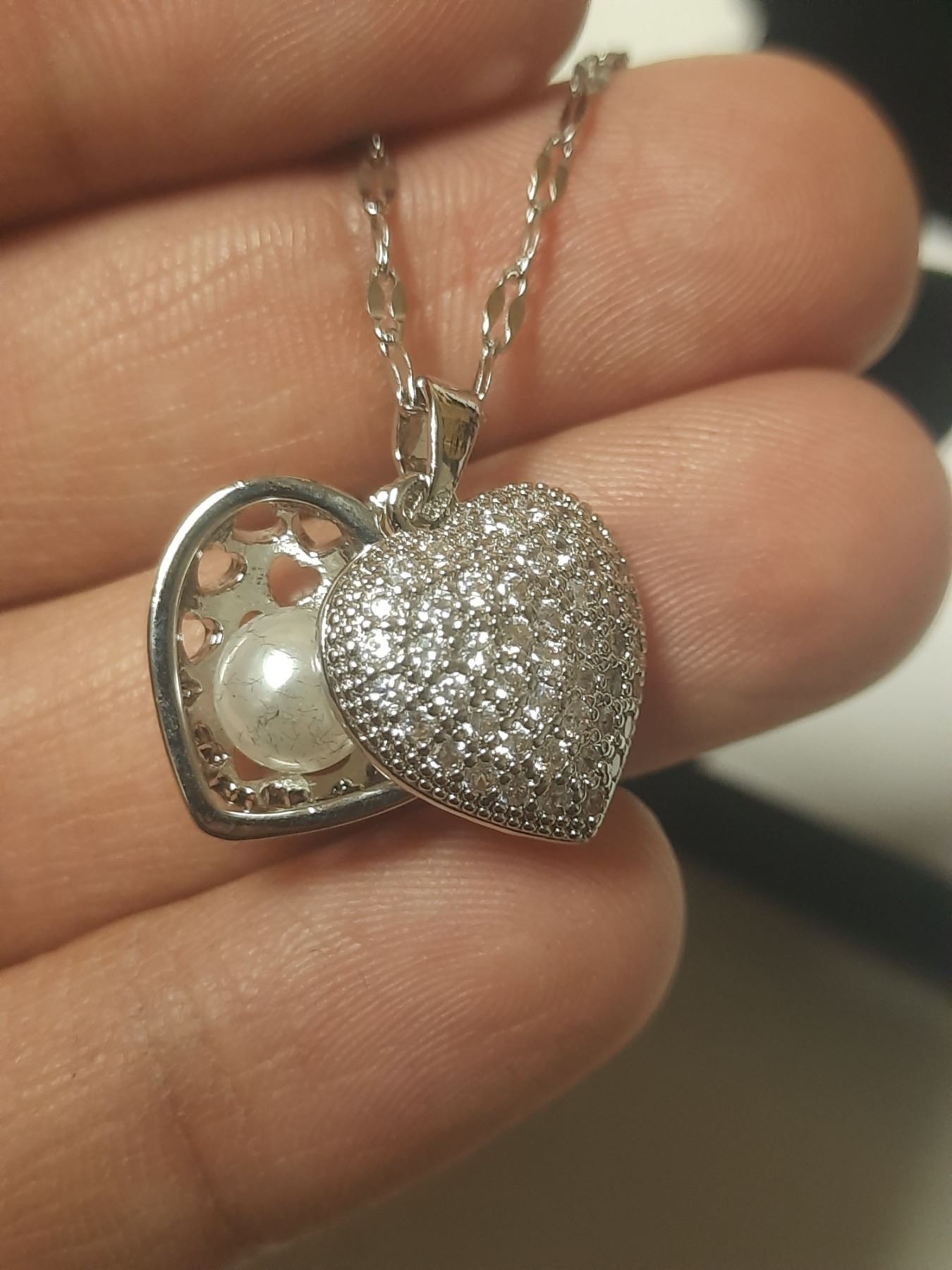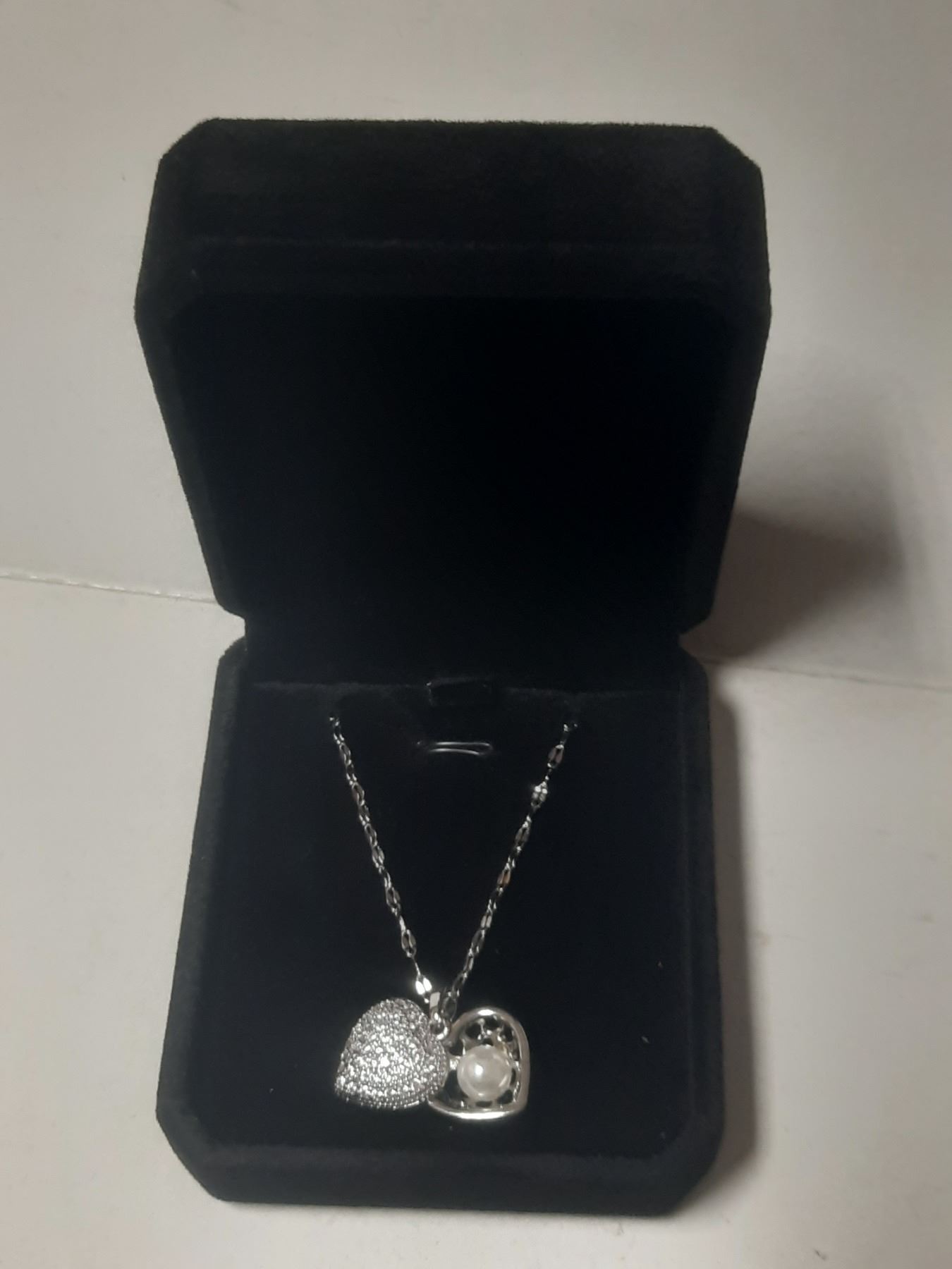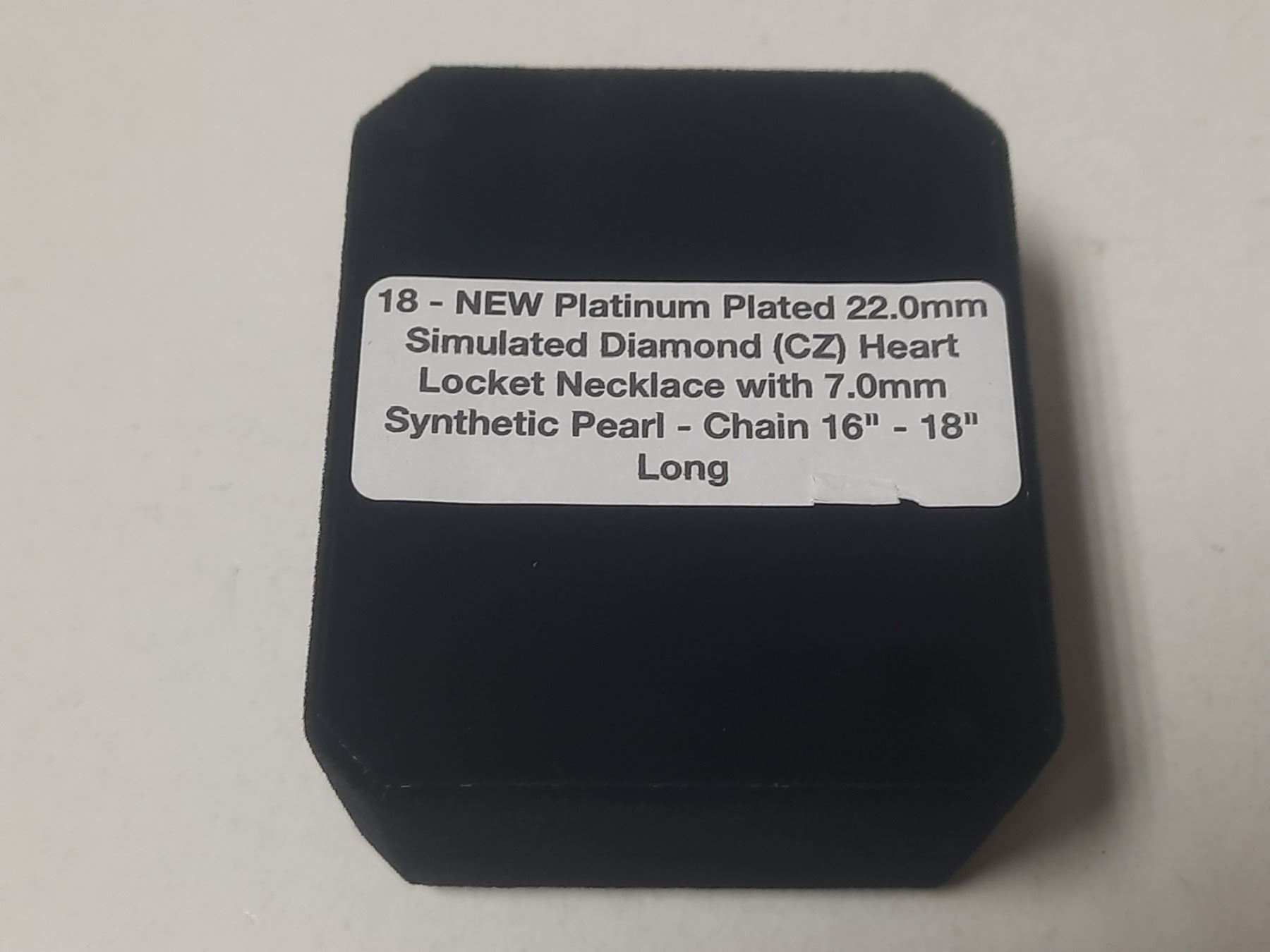 NEW Platinum Plated 22.0mm Simulated Diamond (CZ) Heart Locket Necklace with 7.0mm Synthetic Pearl - Chain 16" - 18" Long