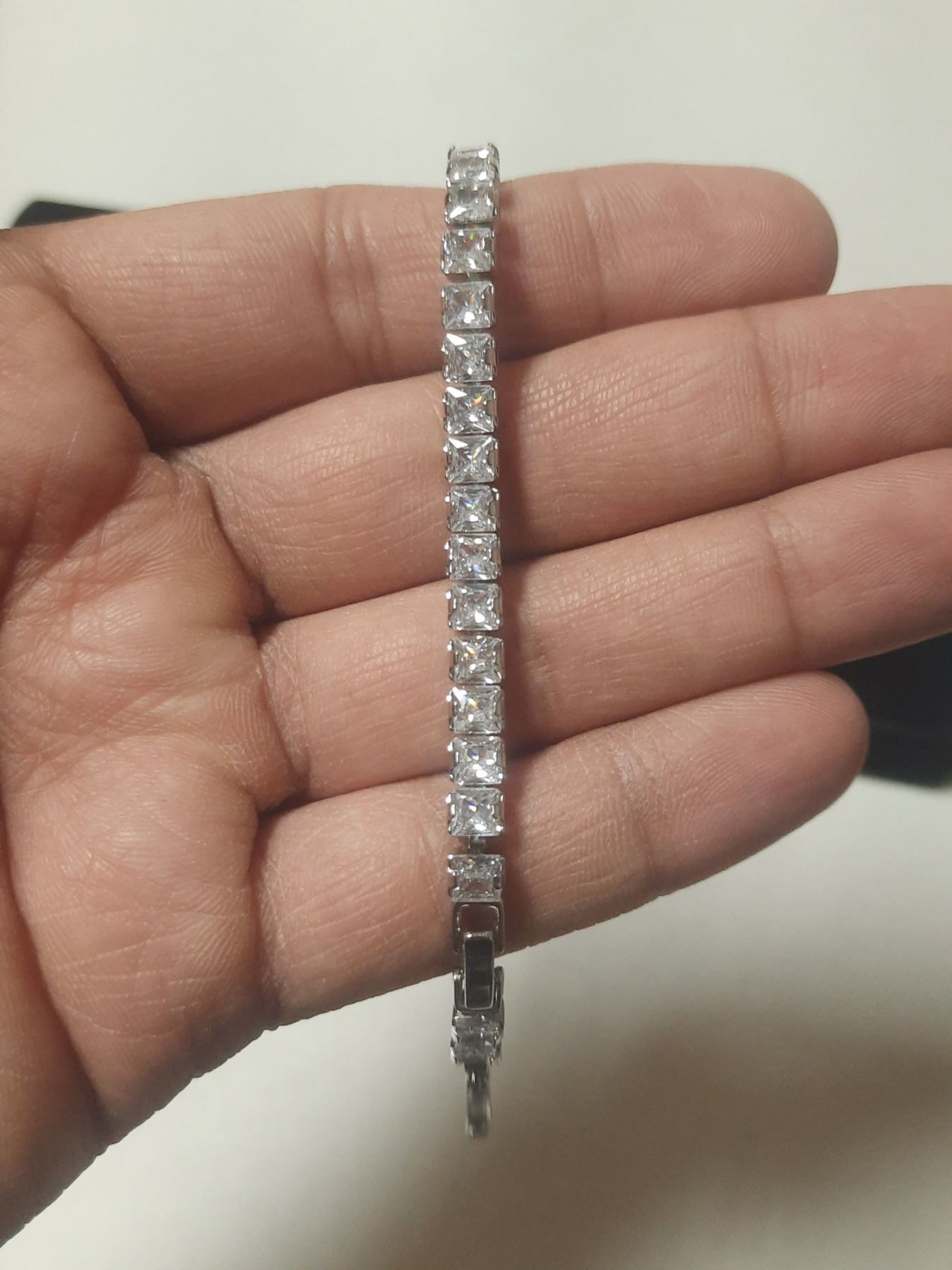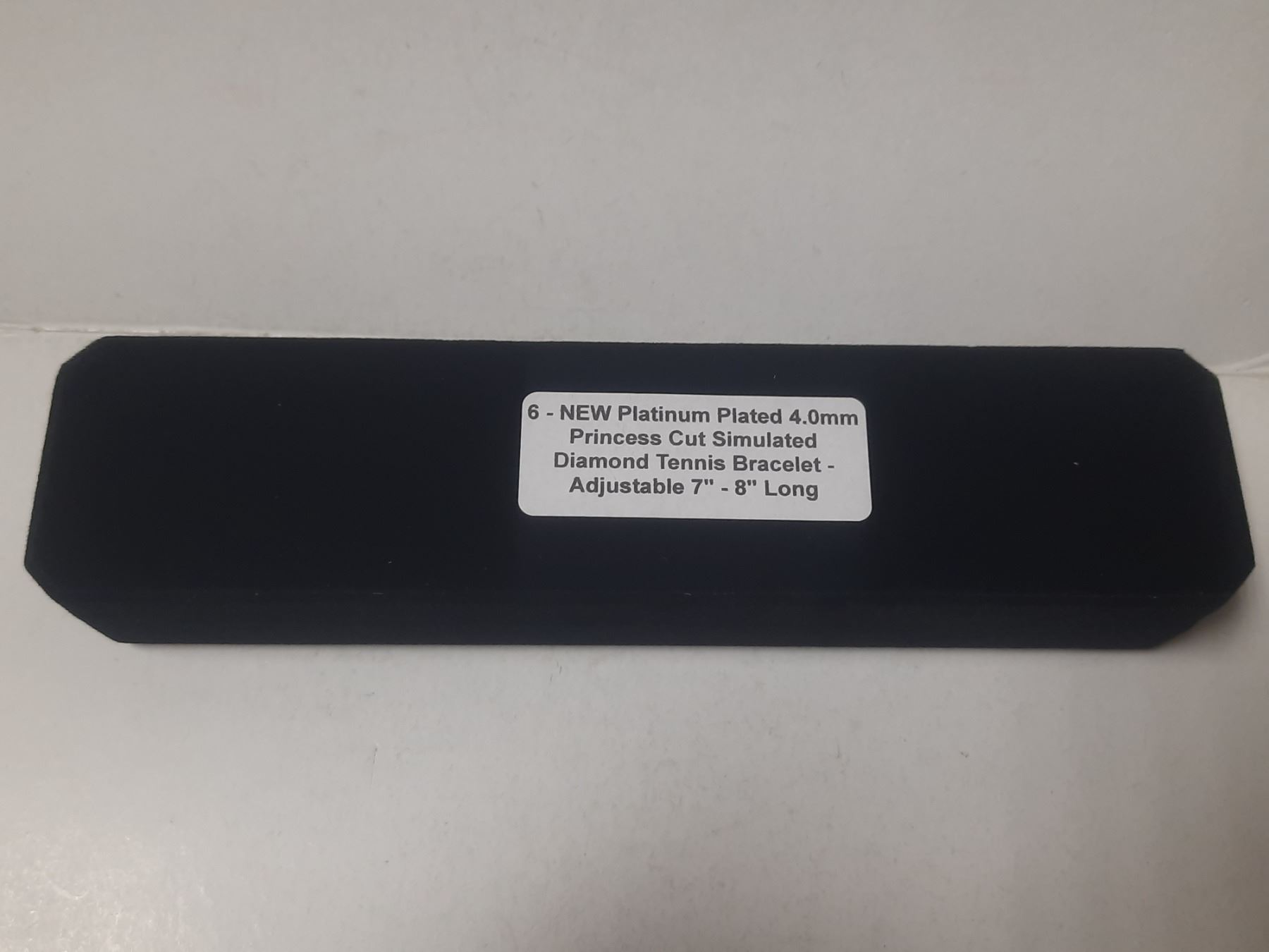 NEW Platinum Plated 4.0mm Princess Cut Simulated Diamond Tennis Bracelet - Adjustable 7" - 8" Long