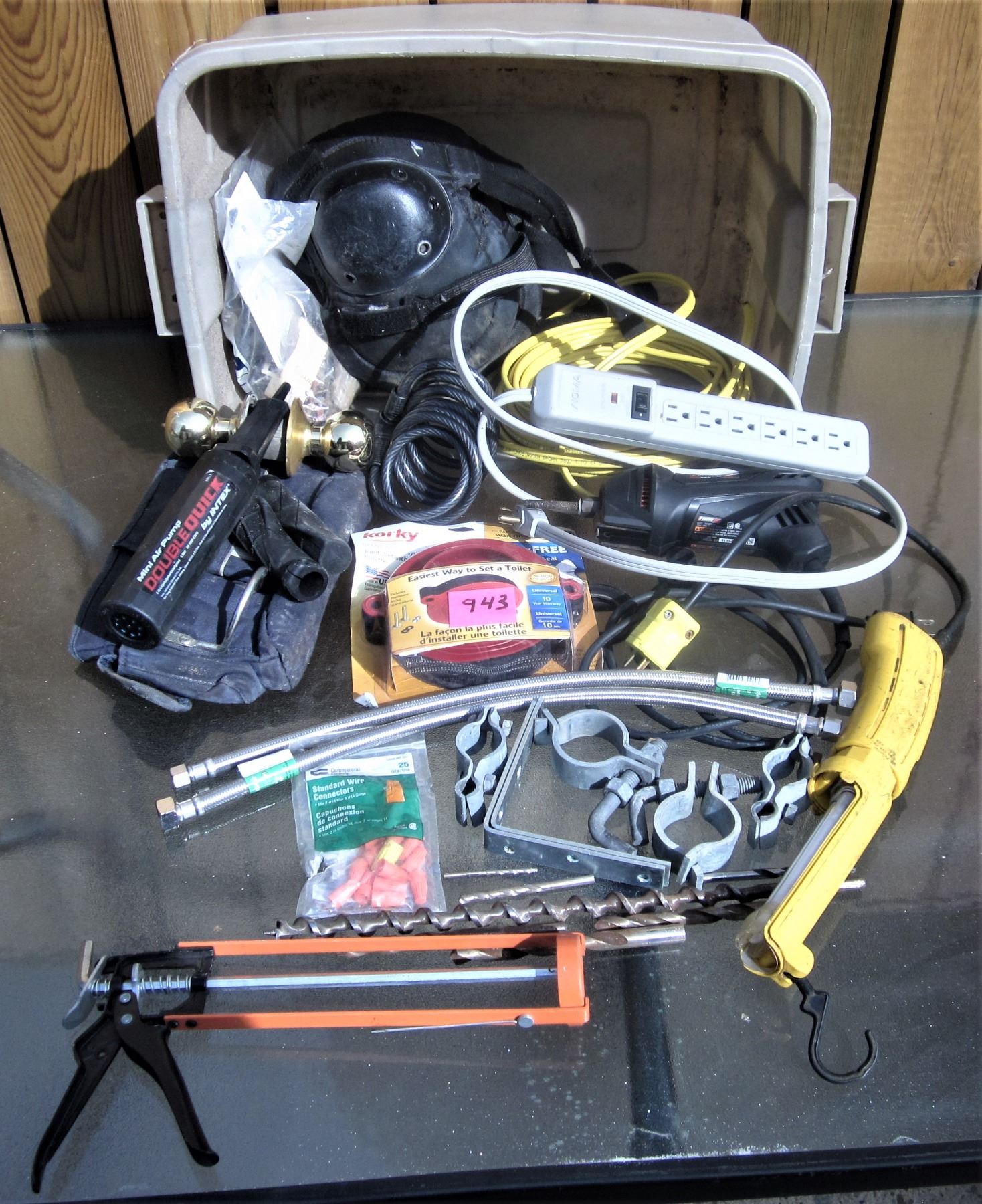 NEW toilet seat seal - 2 new flex connectors - power bar, drill bits, door knob, fence clamps, bike cable, knee pads, wire connectors, shelf brackets