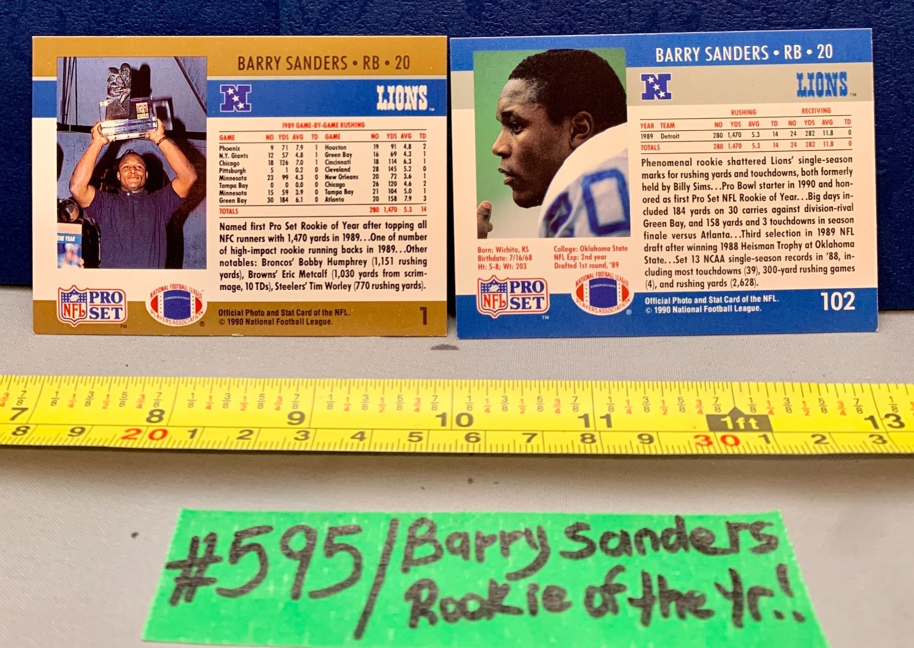 NFL Football Cards - 2 x Highly Sought After Barry Sanders Including the ROOKIE of THE YEAR Card!