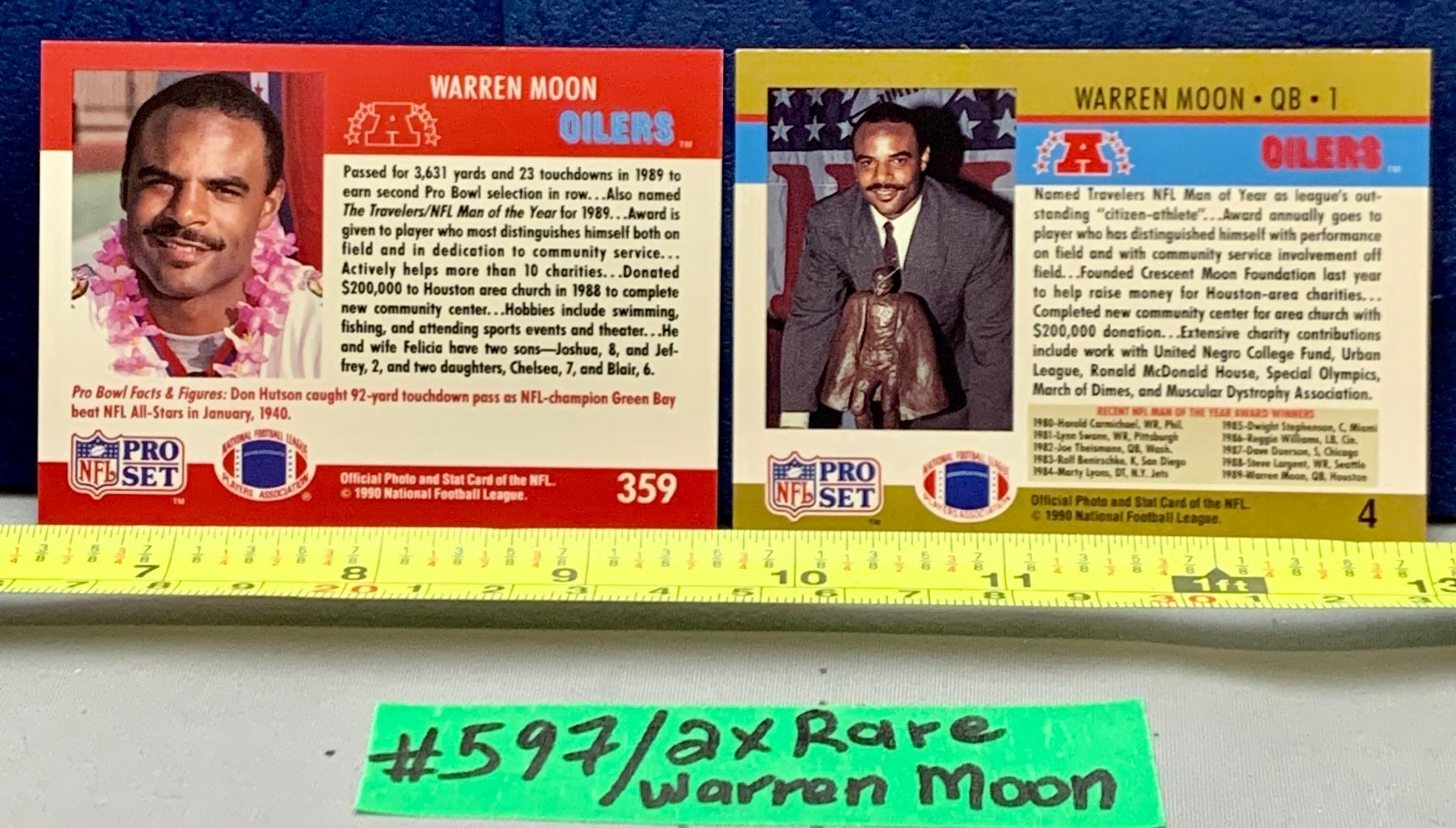 NFL Football Cards - 2 x Rare Warren Moon Cards / Man of the Year Card