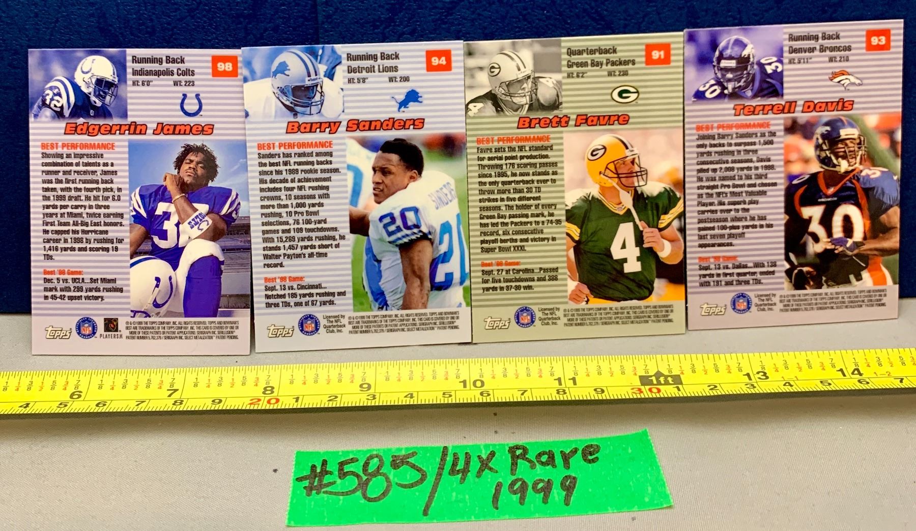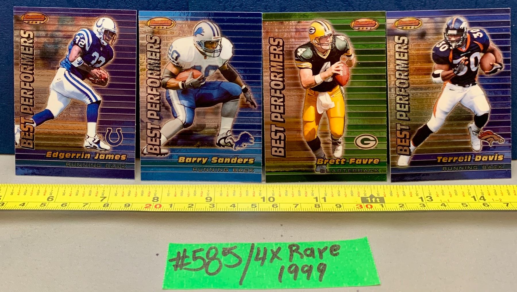 NFL Football Cards - 4 x 1999 Best Performers Chromes: James; Barry Sanders; Brett Favre; Terrell Davis