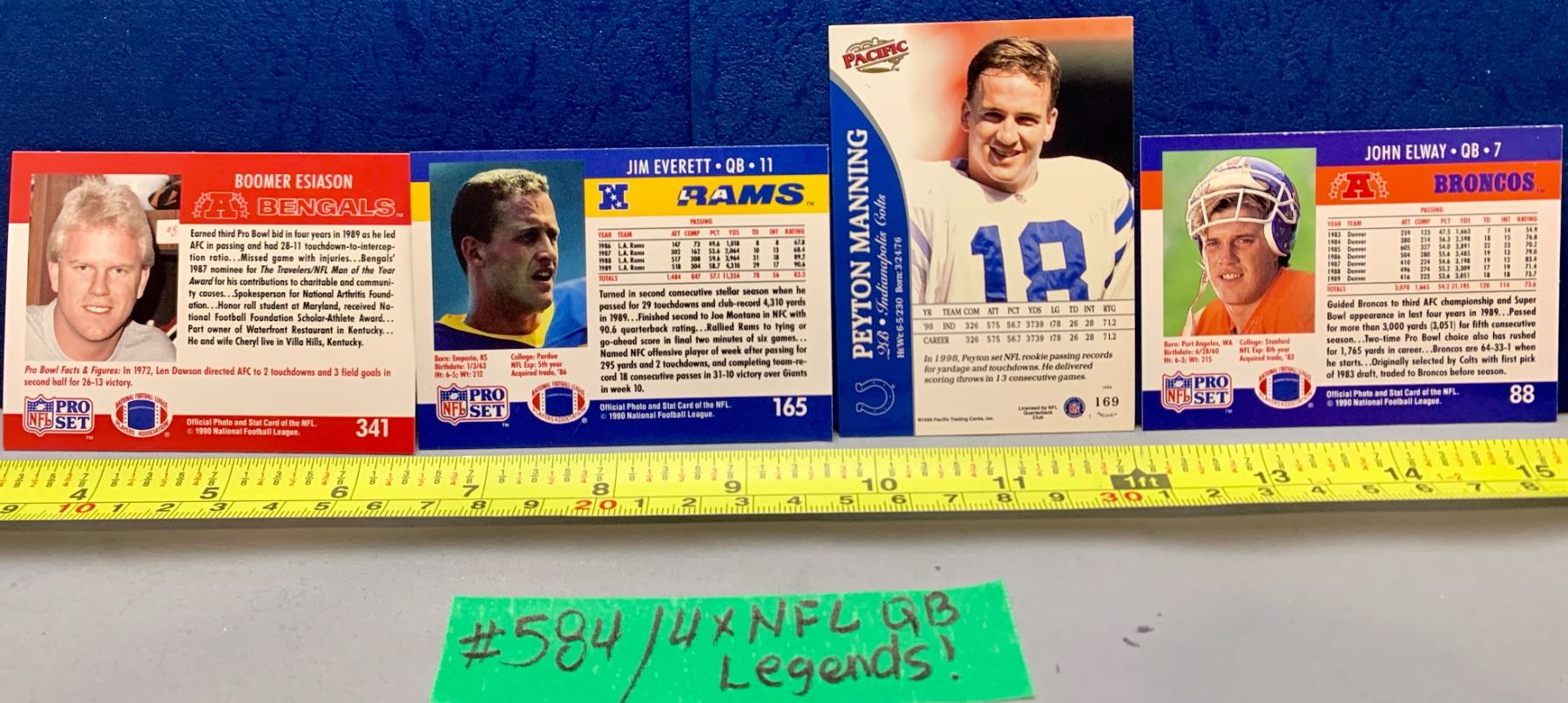 NFL Football Cards - 4 x NFL QB Legends: Boomer Esiason; Jim Everett; Peyton Manning; John Elway