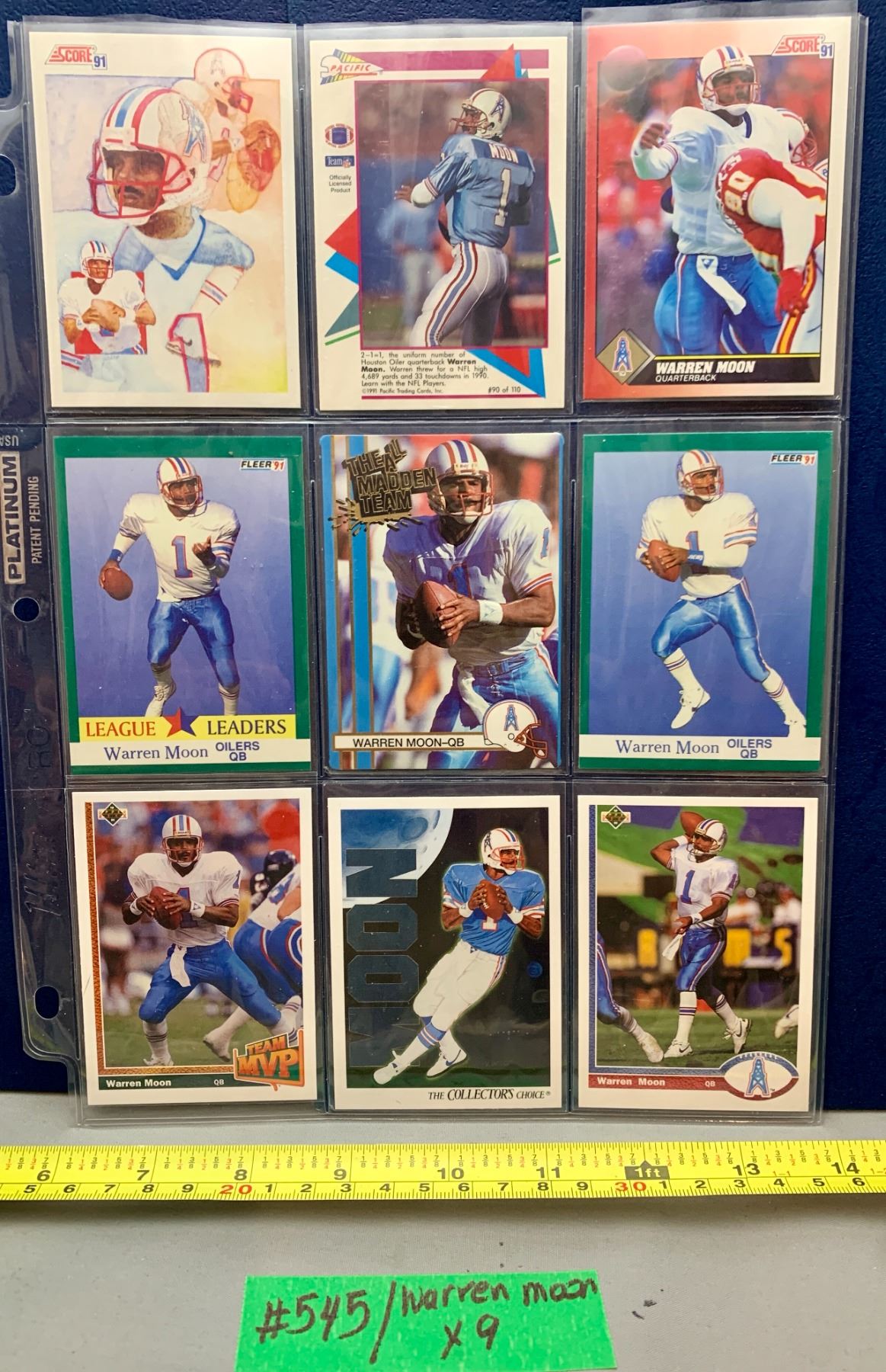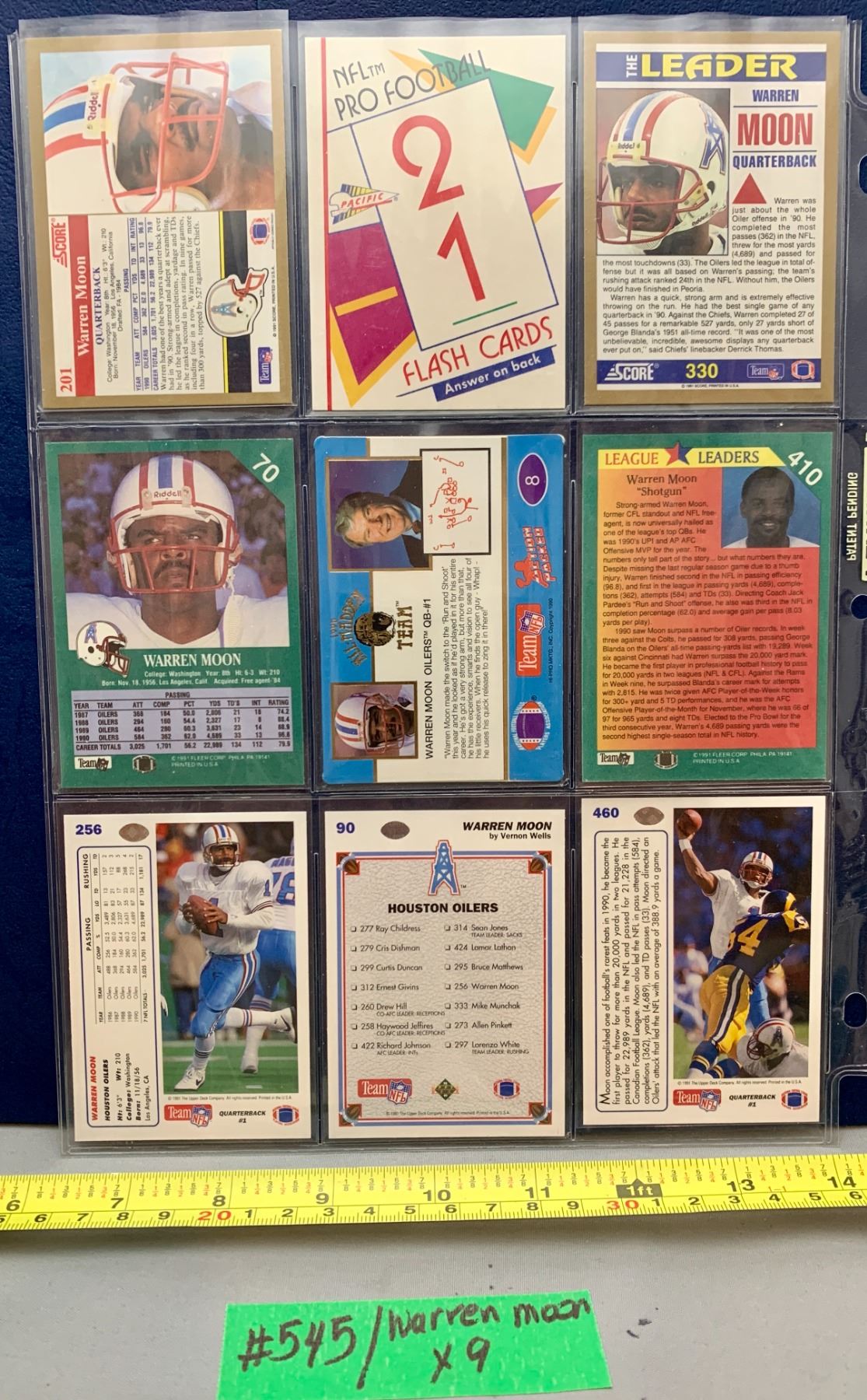NFL Football Cards - 9 x Warren Moon HTF Cards in Dleeve
