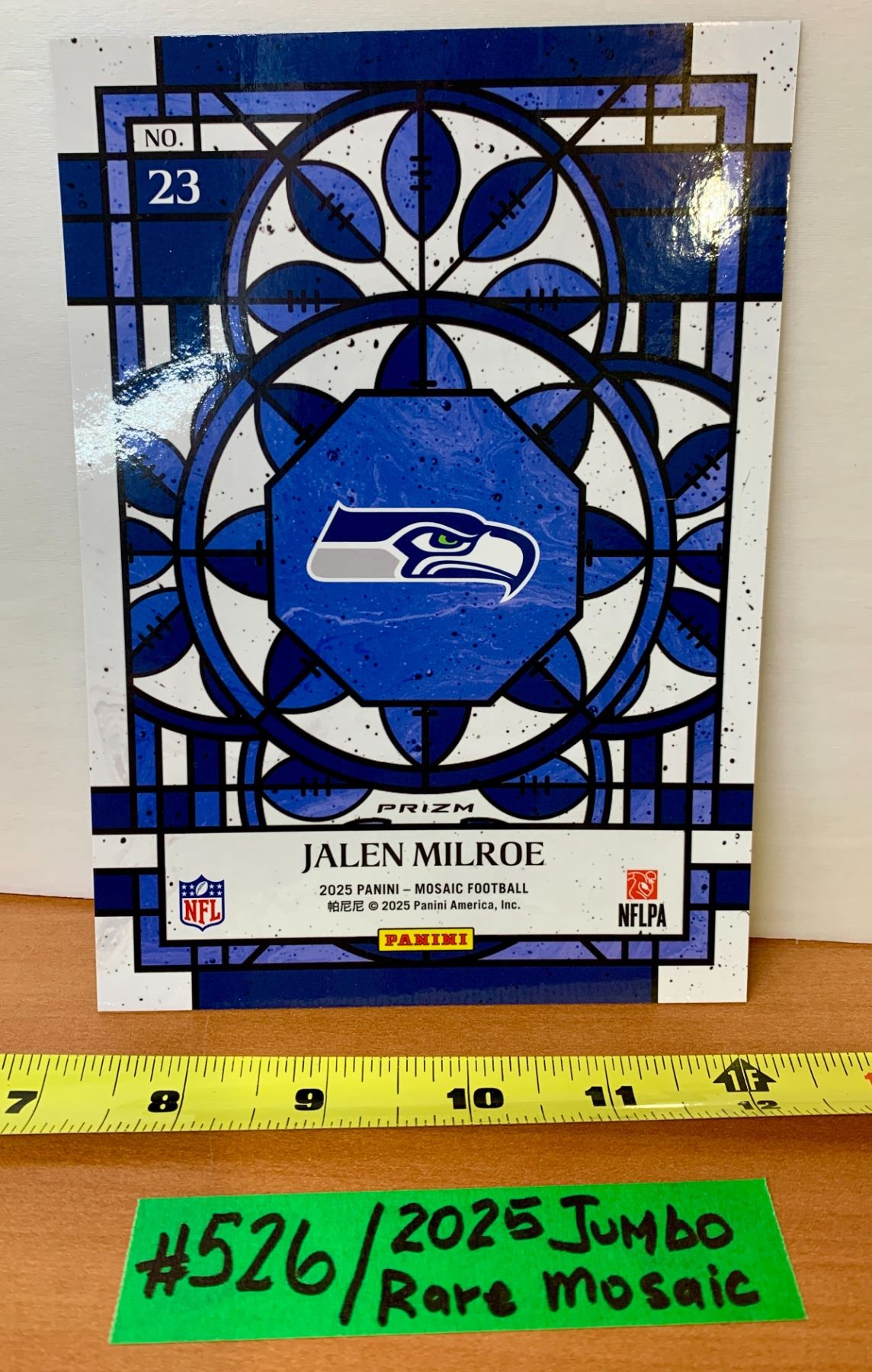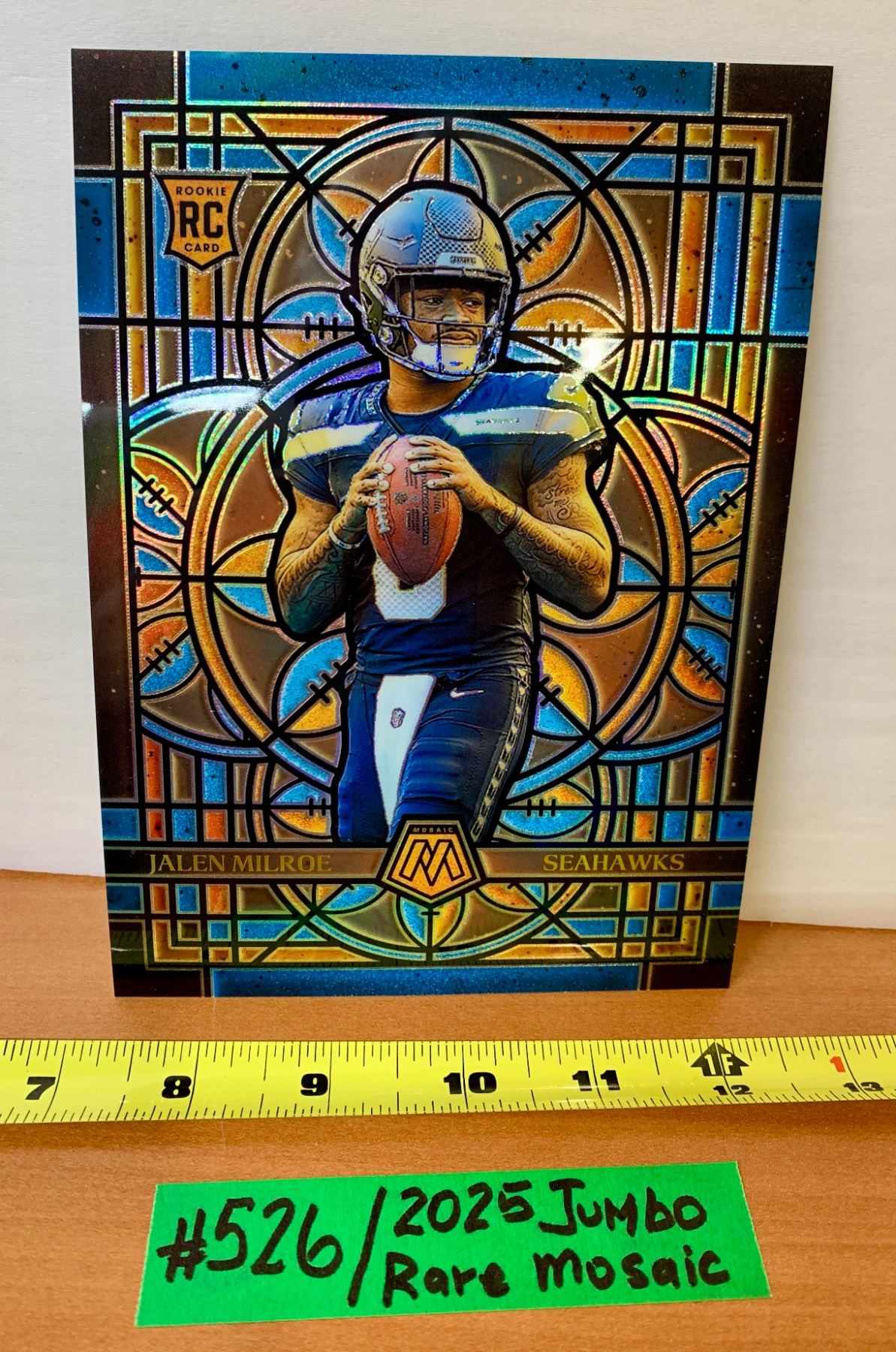 NFL Football Cards - Jalen Milroe Seahawks Rookie Mosaic Stained Glass Jumbo #23 in Toploader!