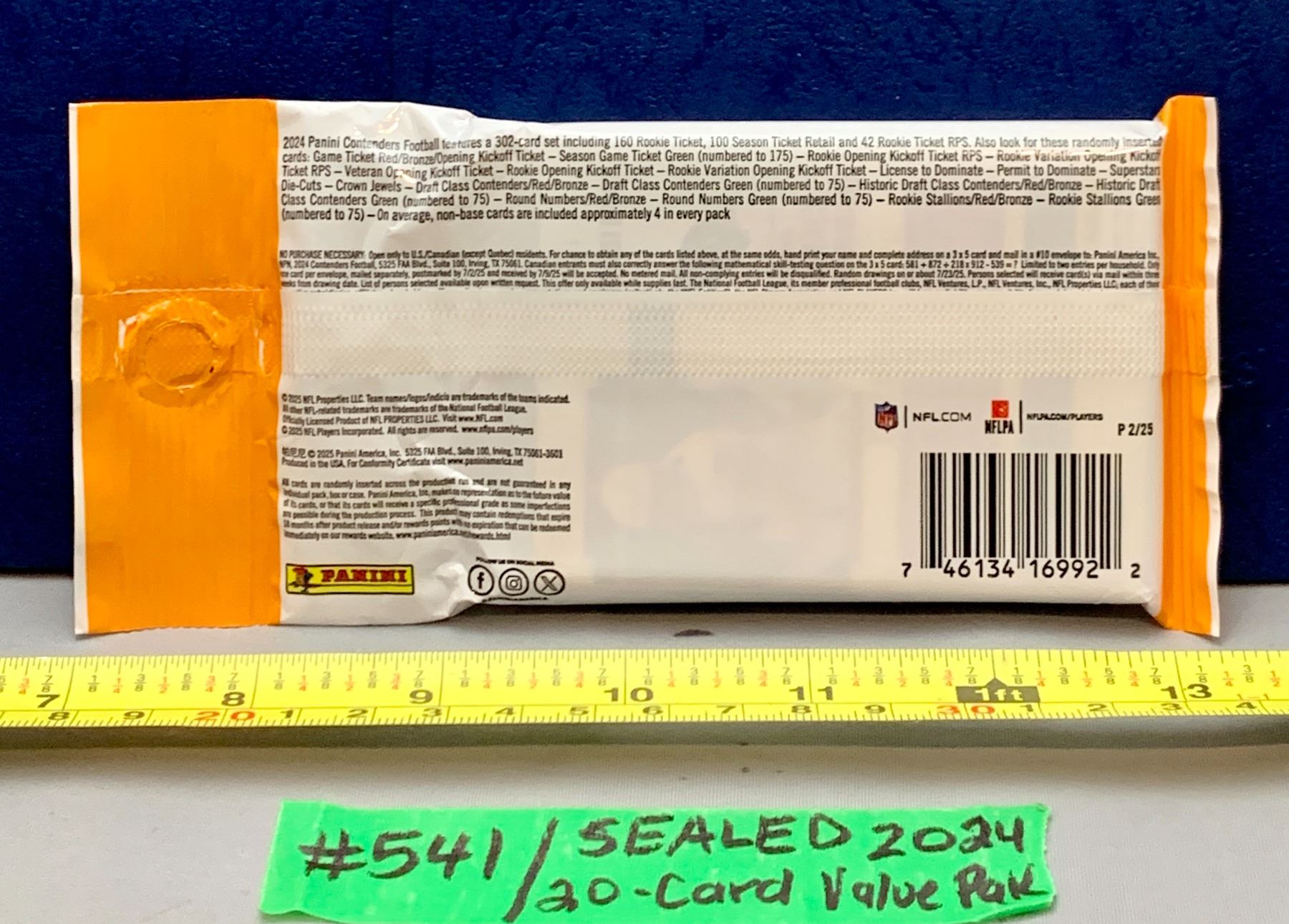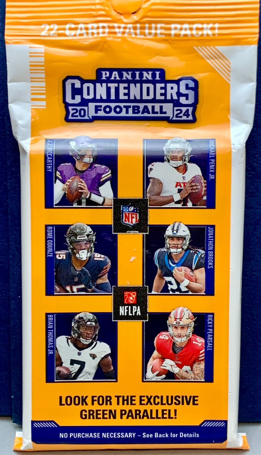NFL Football Cards - Panini Contenders 2024 NFL 22-Card Sealed Hanger Pack RC? Maye, Nix, Williams ?