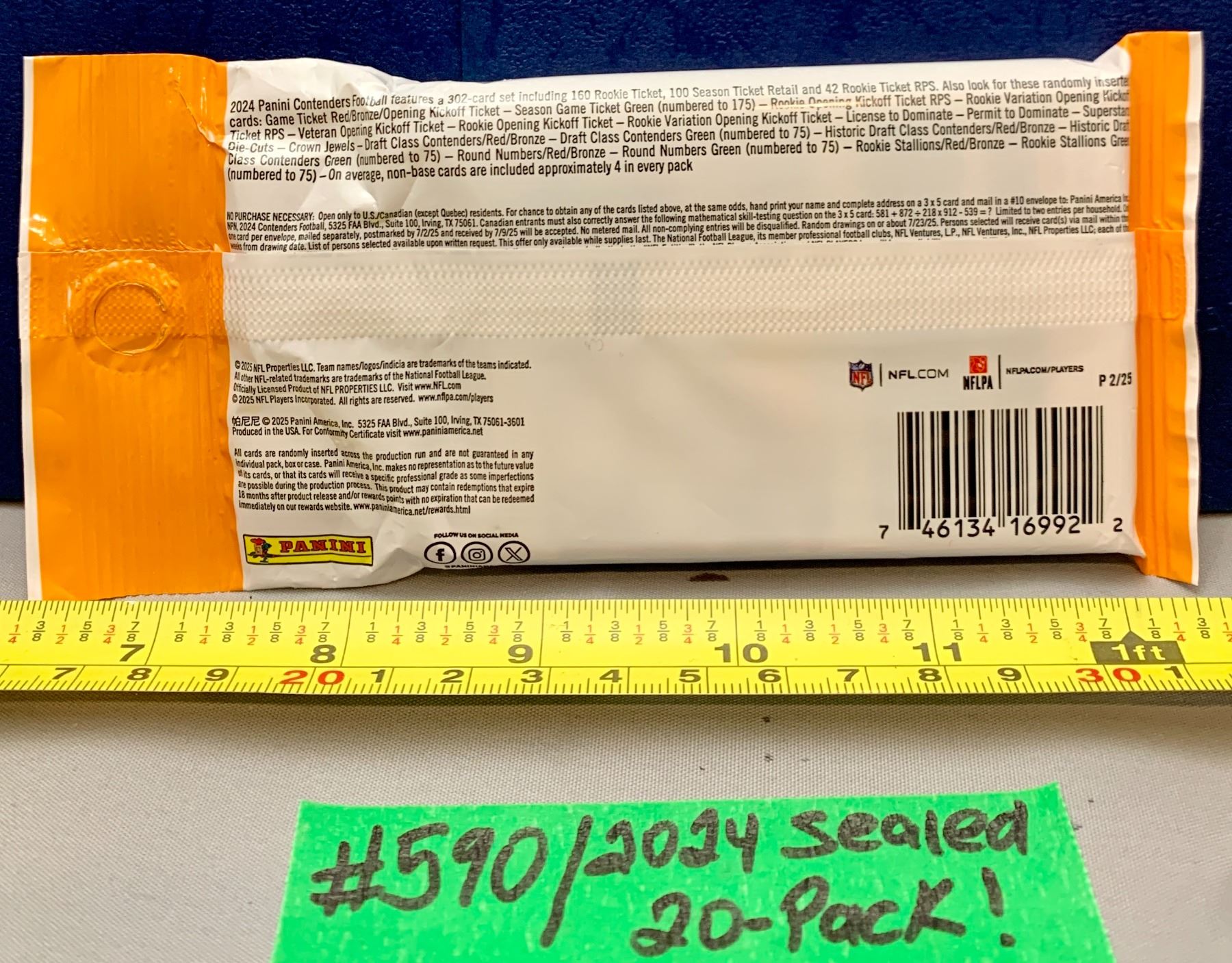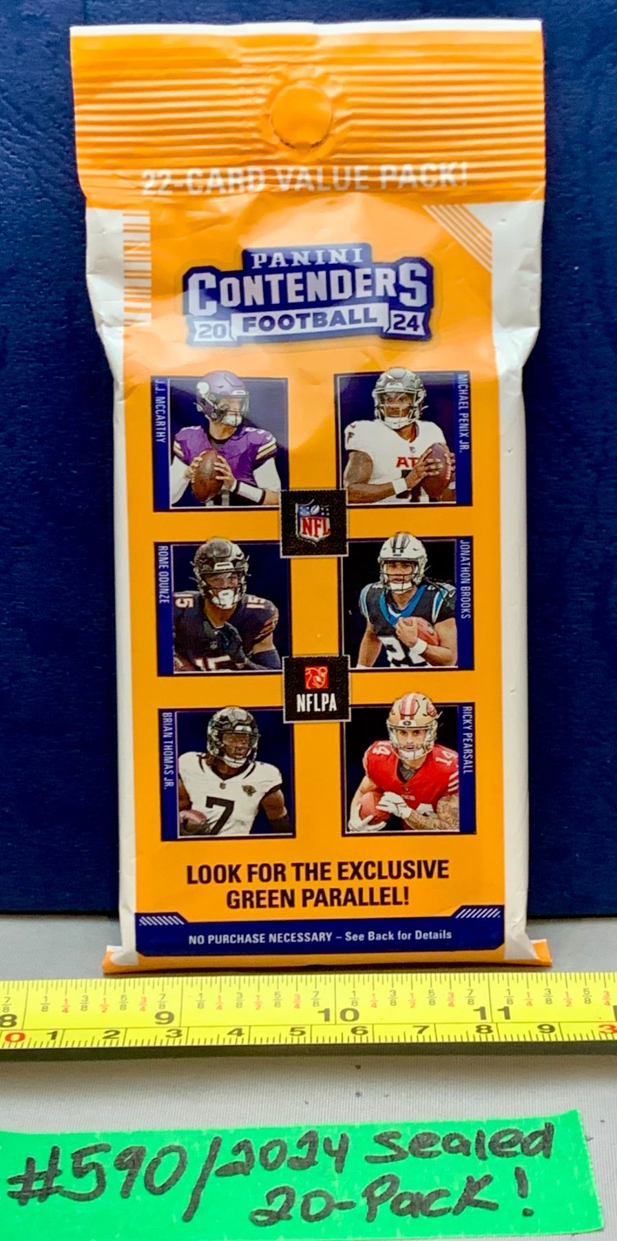 NFL Football Cards - Panini Contenders 2024 NFL 22-Card Sealed Hanger Pack RC? Maye, Nix, Williams ?