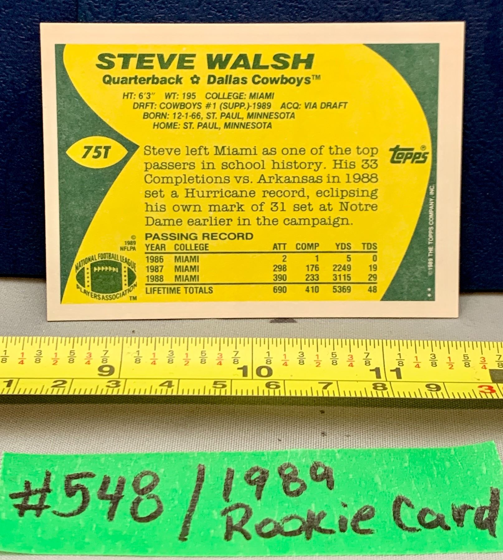 NFL Football Cards - Vintage 1989 Steve Walsh Cowboys Rare Rookie Card
