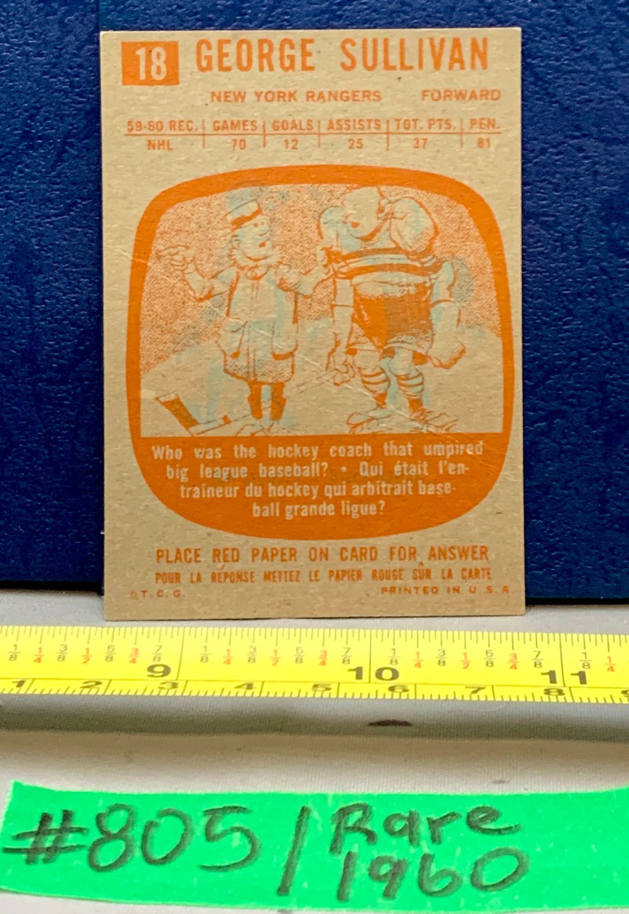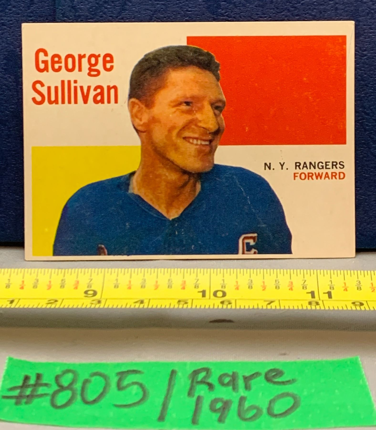 NHL HOCKEY - 1960 Rare George Sullivan New York Rangers A BEAUTY!