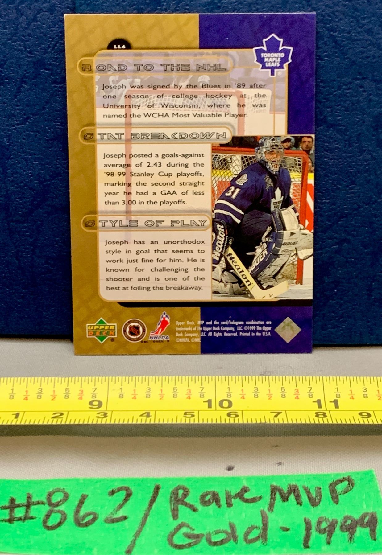 NHL HOCKEY - 1999 Curtis Joseph Last Line MVP Card