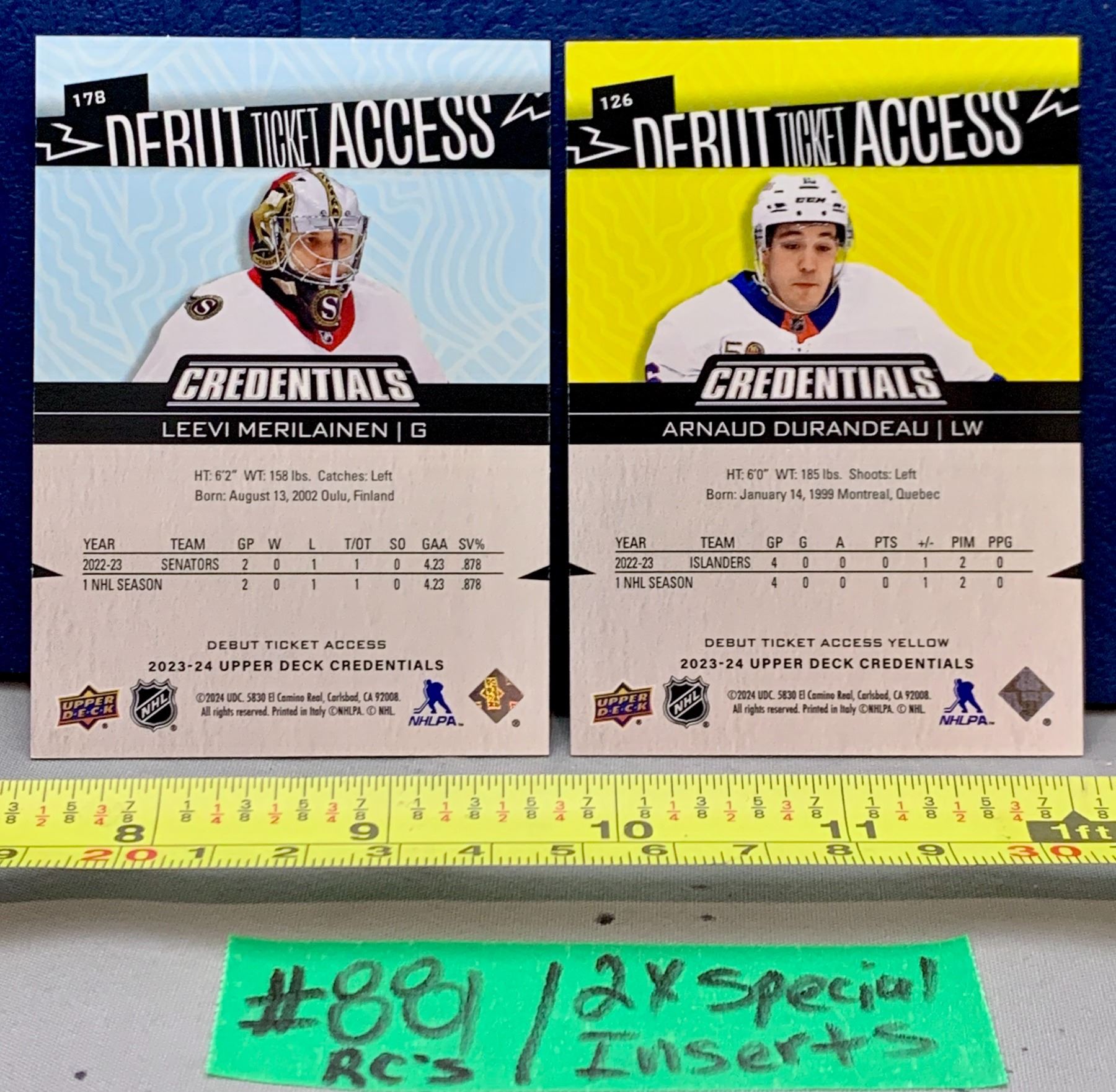 NHL HOCKEY - 2 x Credentials Debut Ticket Access Gold and Silver Rookie Cards - Durandeau
