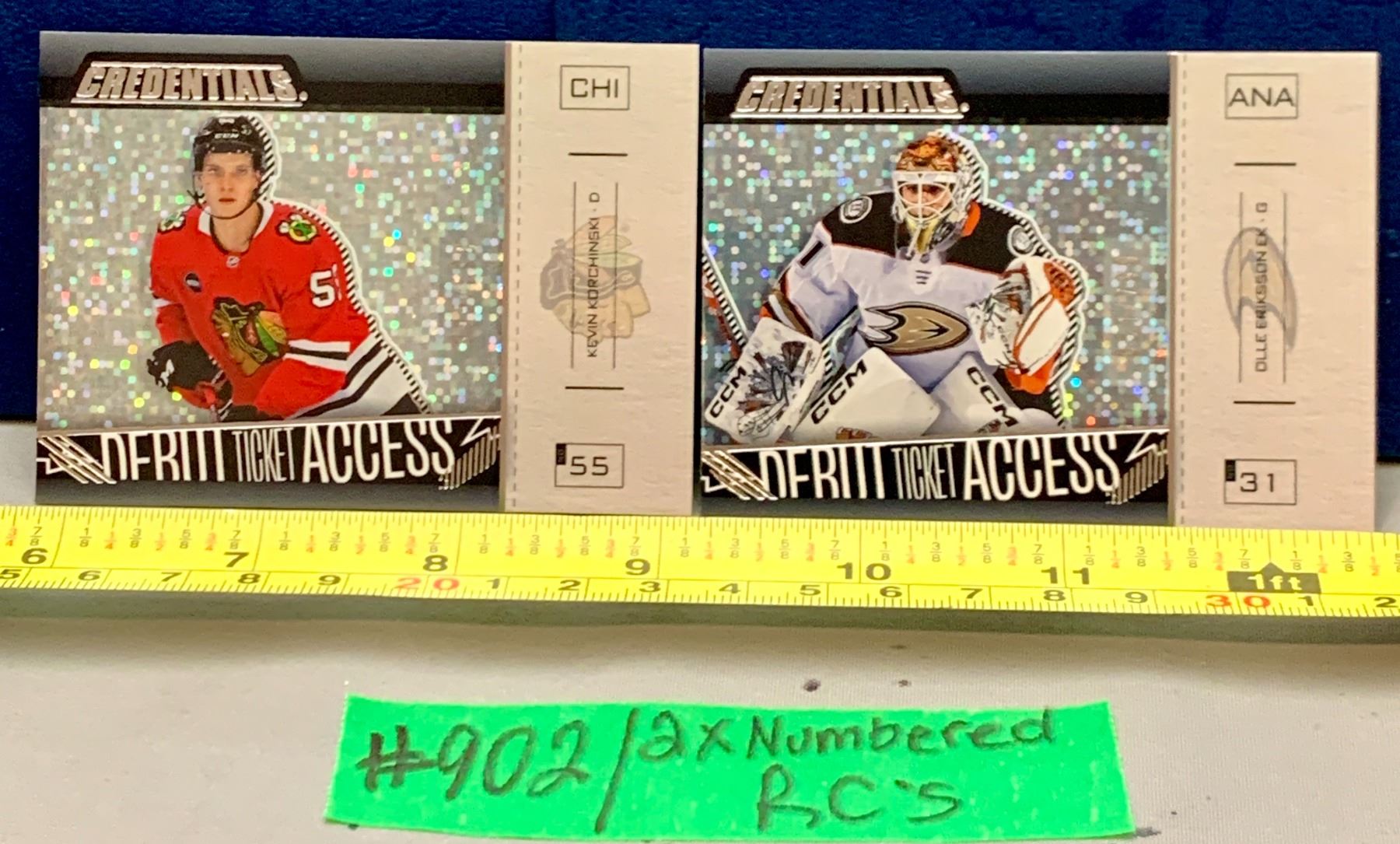 NHL HOCKEY - 2 x Credentials Debut Ticket Access Silver Rookie Cards - Korchinski & Olle Ericksson