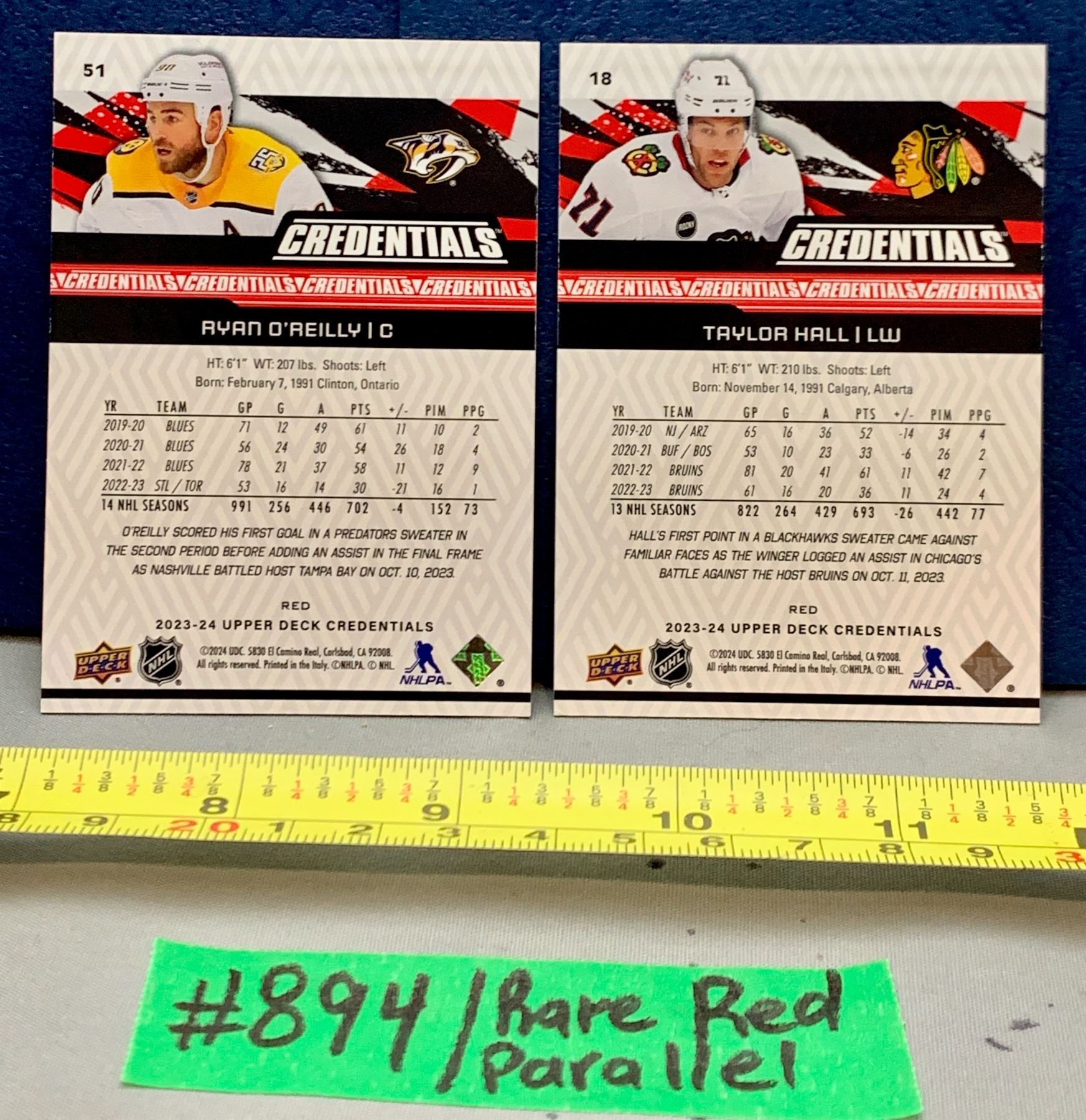 NHL HOCKEY - 2 x Credentials Red Foil Rare Cards - O'Reilly & Taylor Hall