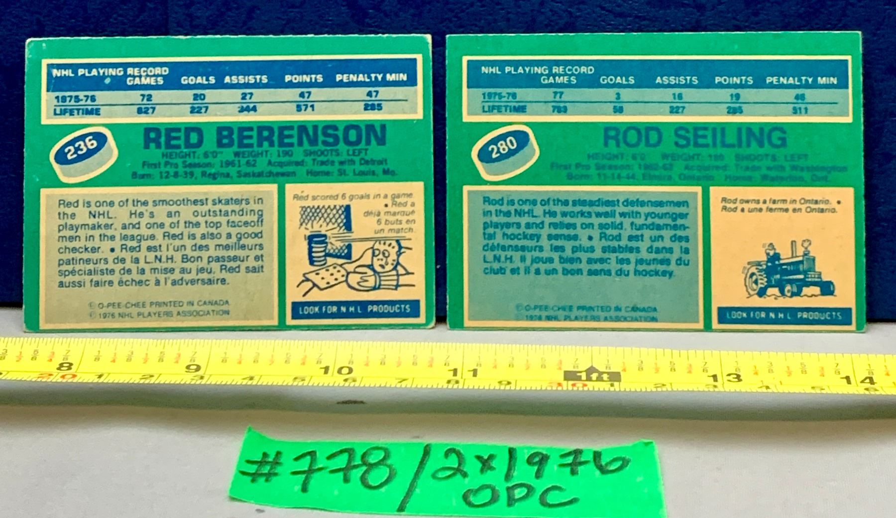 NHL HOCKEY - 2 x OPC 1976 Berenson & Seiling