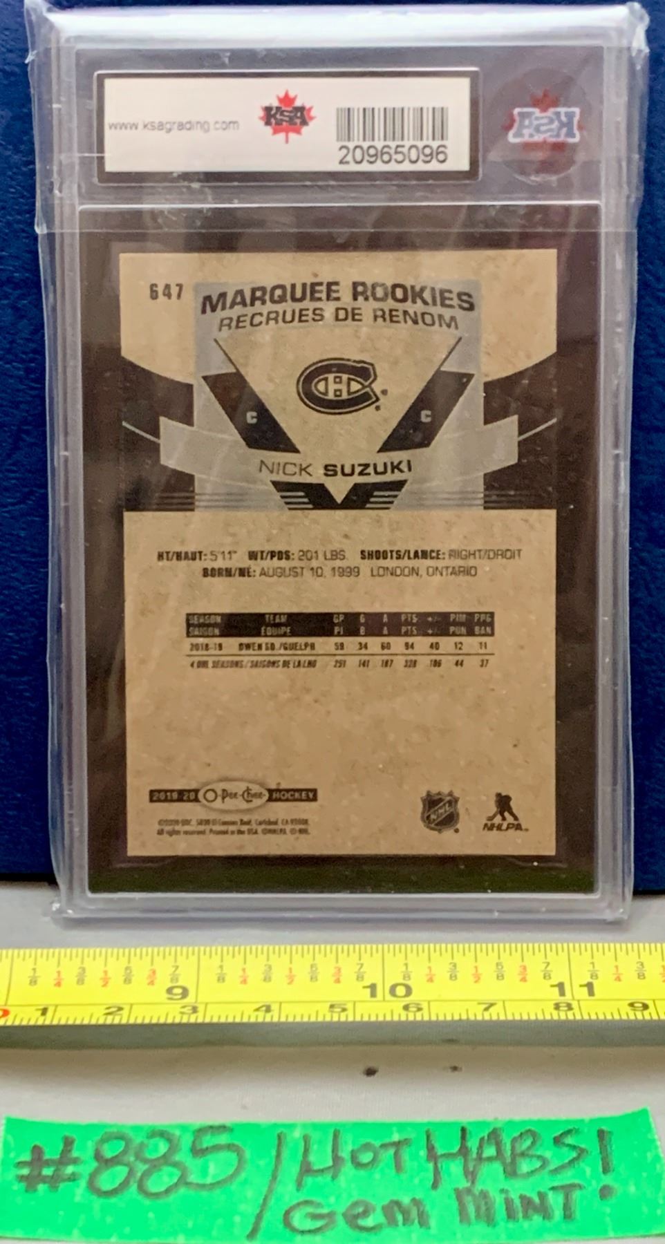 NHL HOCKEY - 2019-20 Nick Suzuki Rare Marquee Rookies KSA 10 Gem Mint!