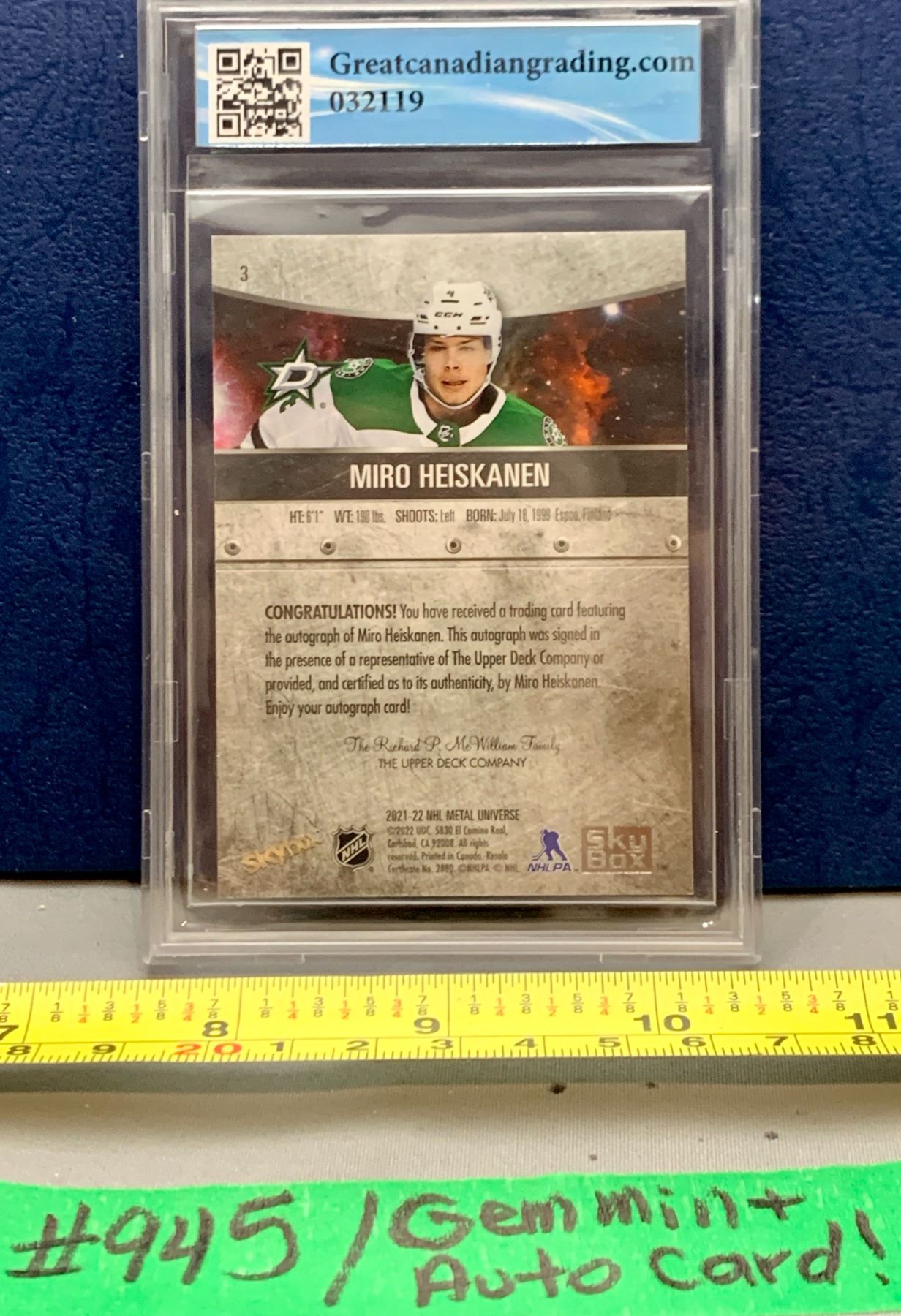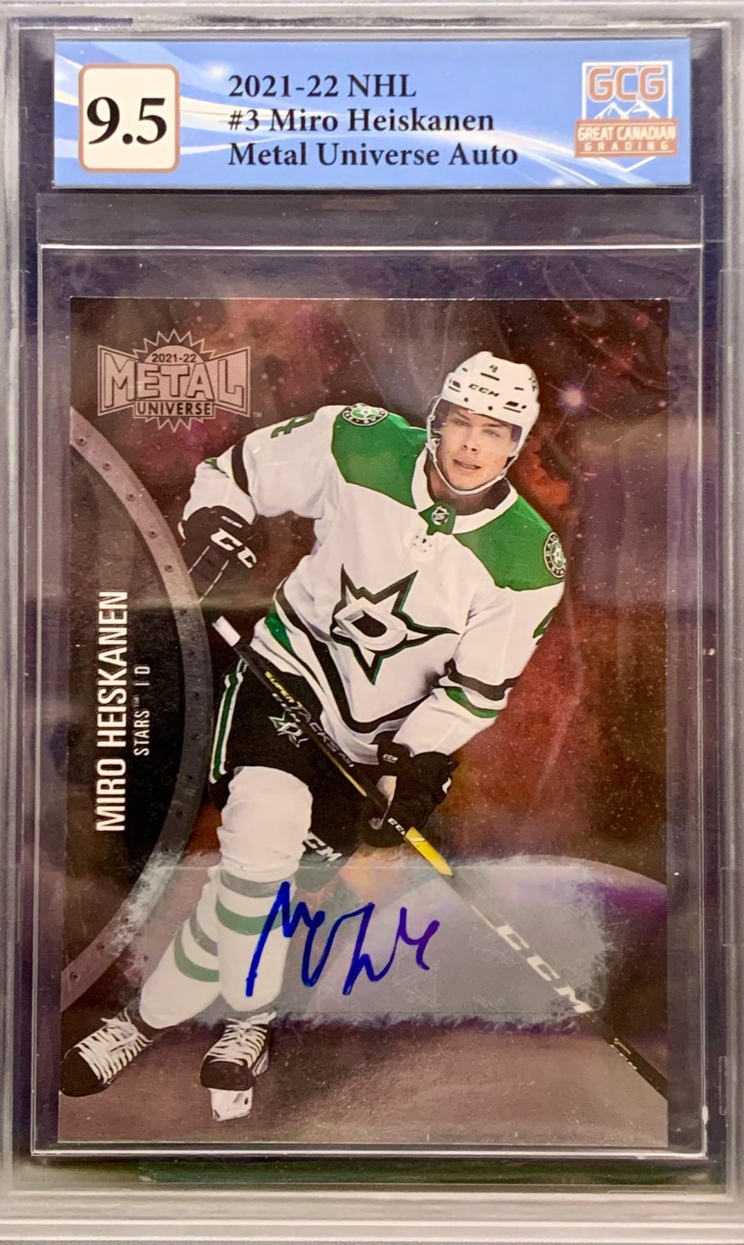 NHL HOCKEY - 2021-22 Rare Miro Heiskanen Metal Universe Auto Card Graded 9.5 MINT!