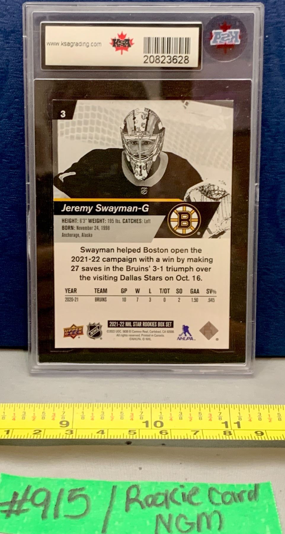 NHL HOCKEY - 2021 Rookie Card Jeremy Swayman KSA 9.5 Near Gem Mint!