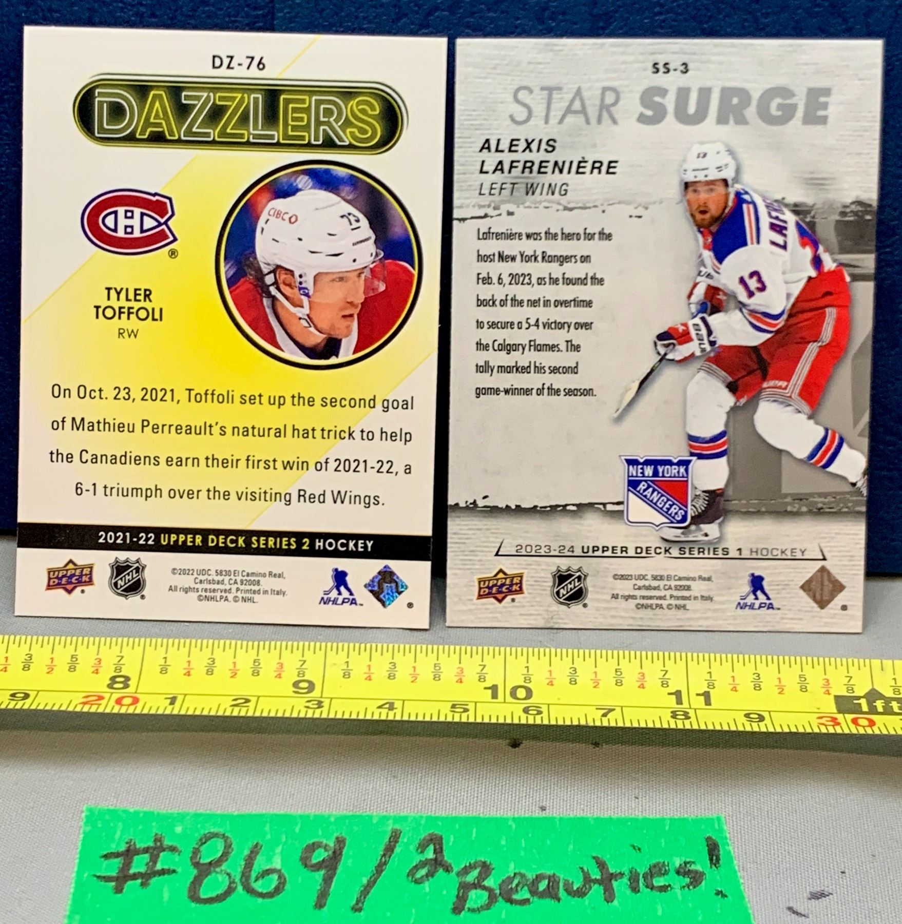 NHL HOCKEY - 2023-24 Tyler Tofoli Orange Dazzlers & Alexis Lafreniere Chrome Star Surge Cards