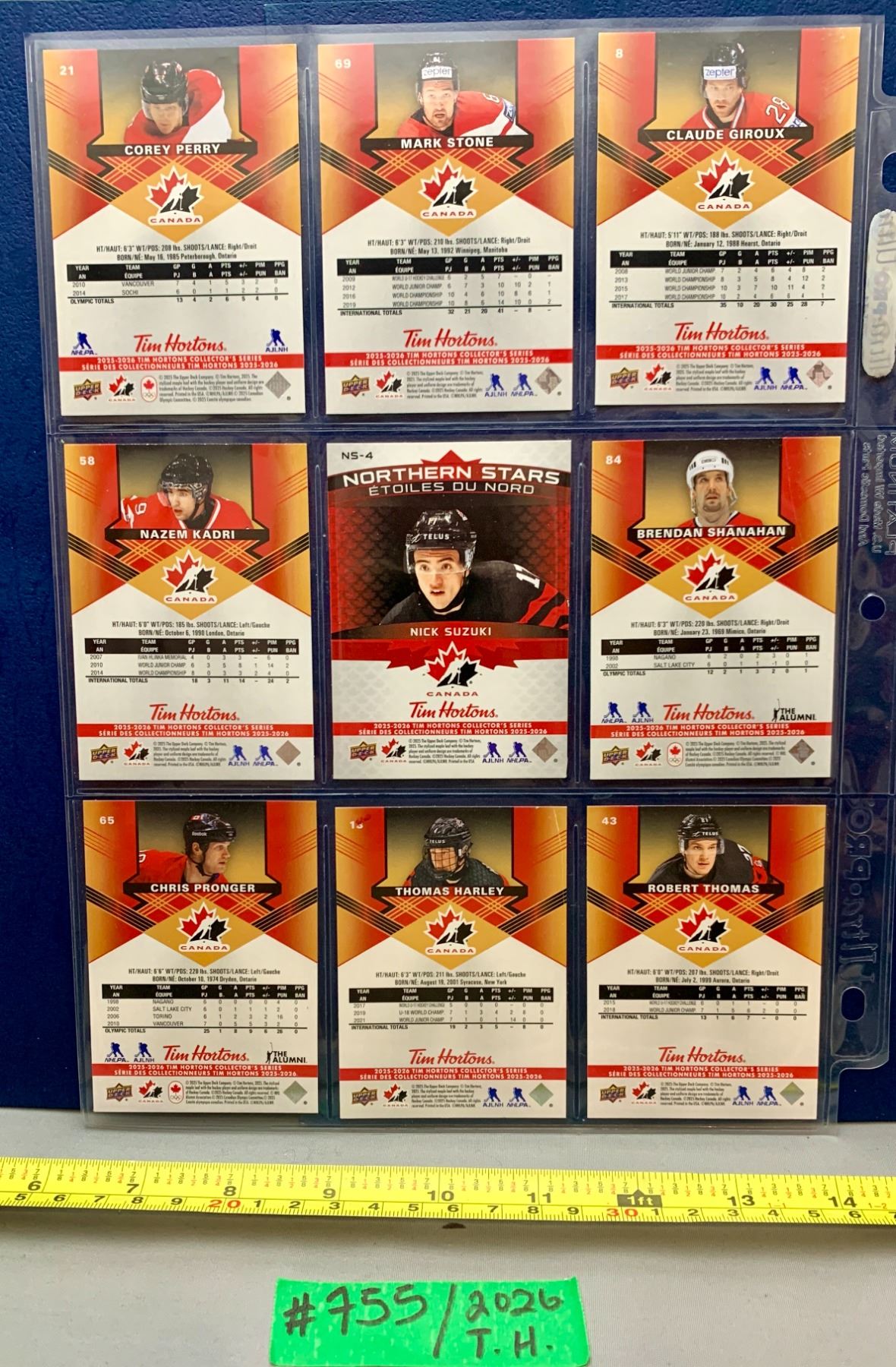 NHL HOCKEY - 9 x Tim Hortons 2026 Mixed Team Canada Stars Lot 3 Suzuki Kadri Stone