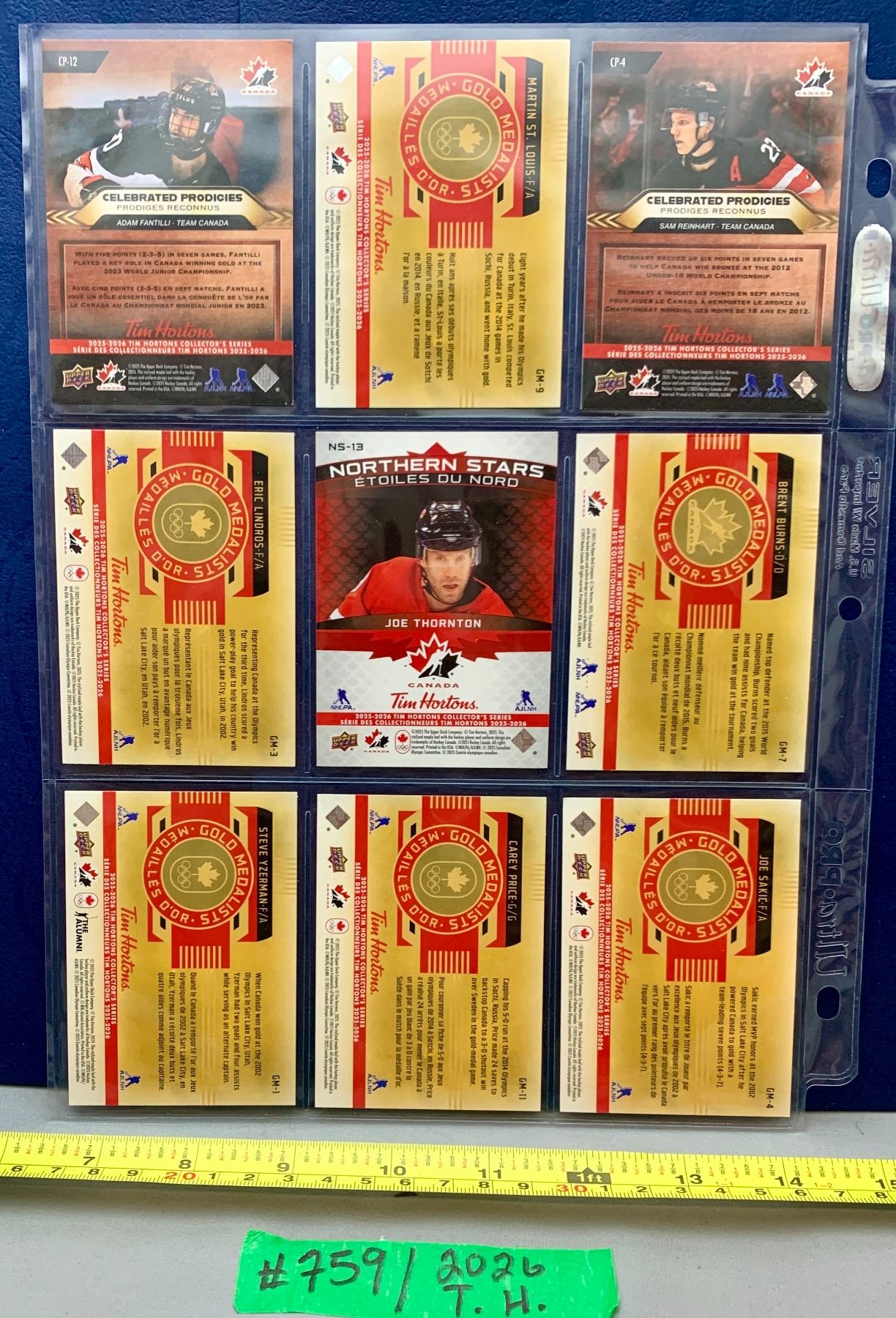NHL HOCKEY - 9 x Tim Hortons 2026 Mixed Team Canada Stars Lot 7 Thornton Burns Sakic Price